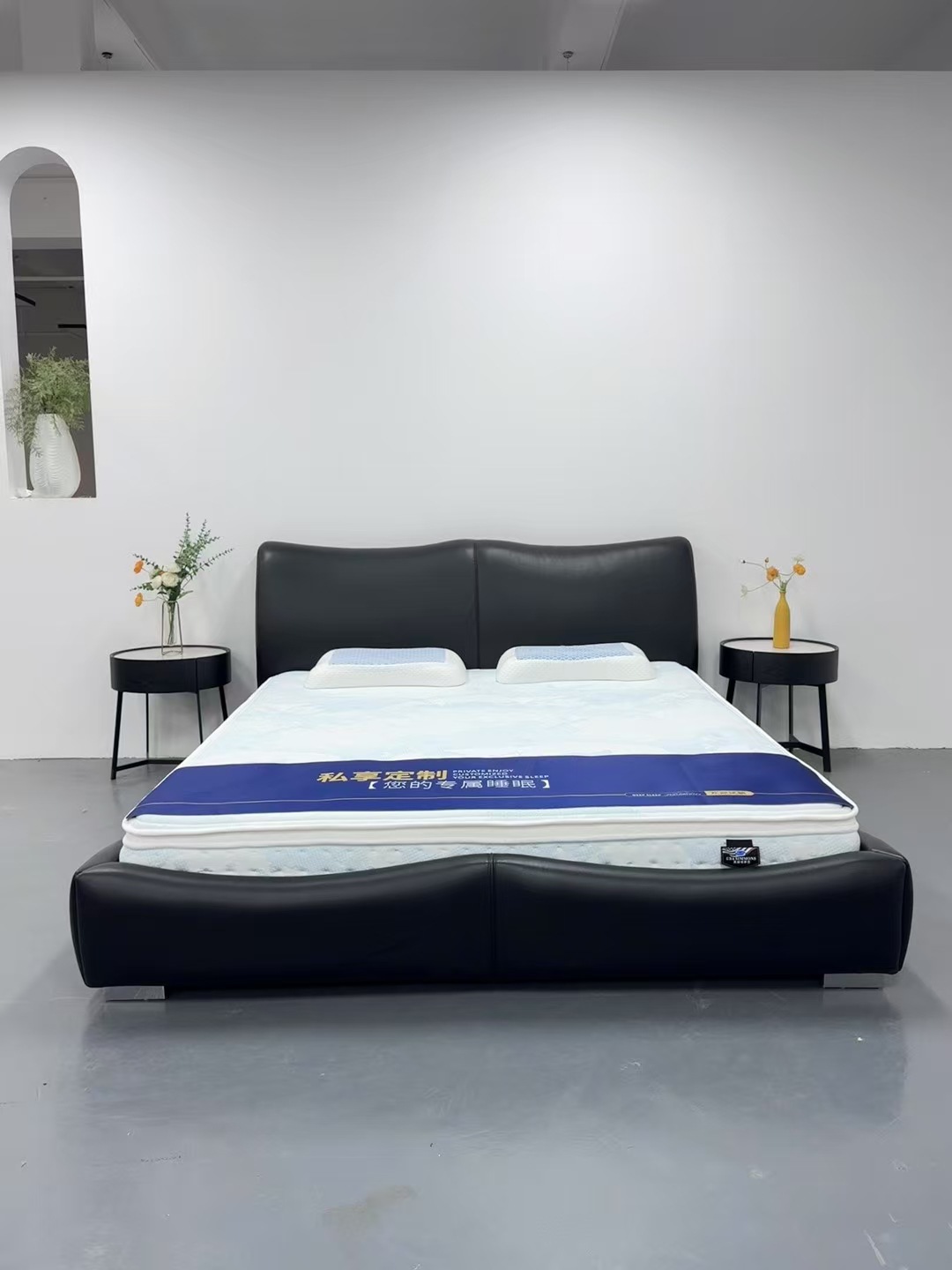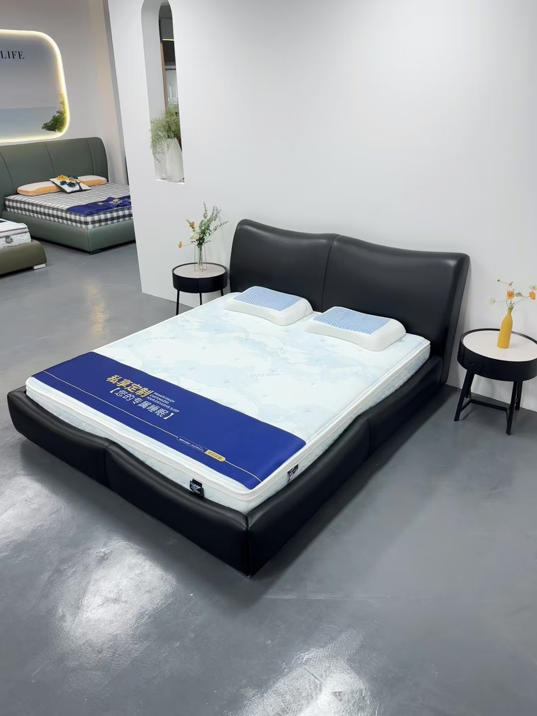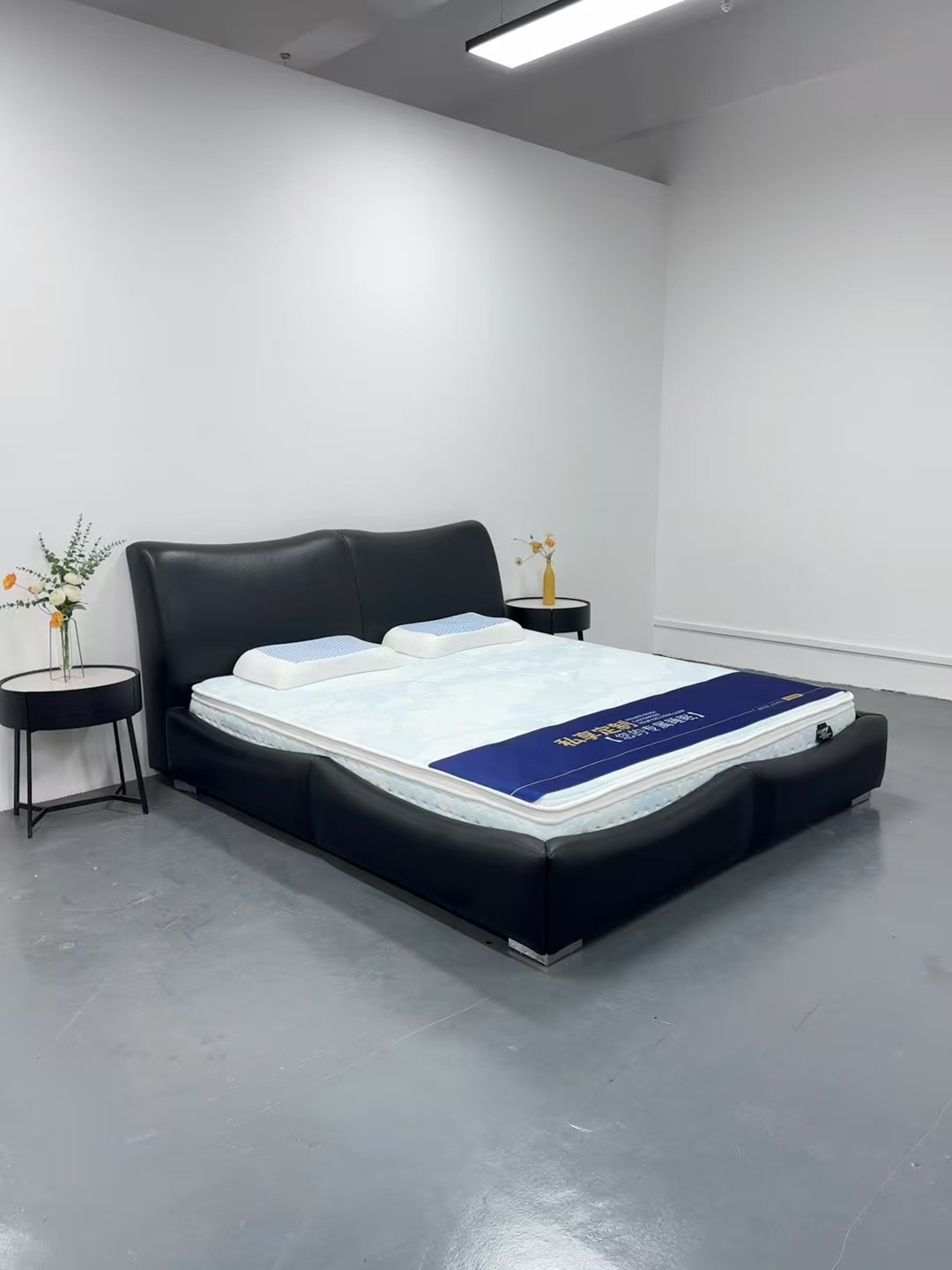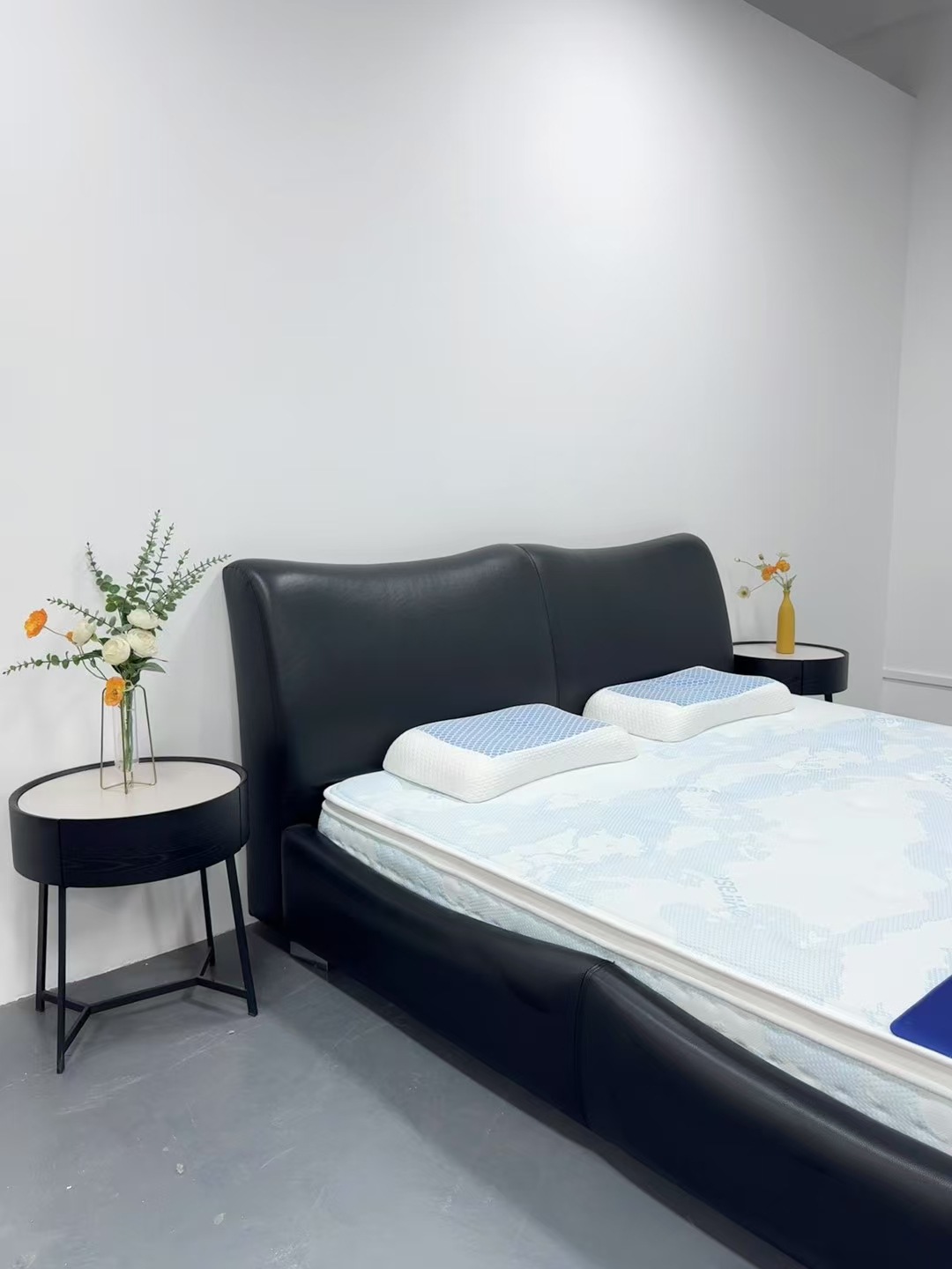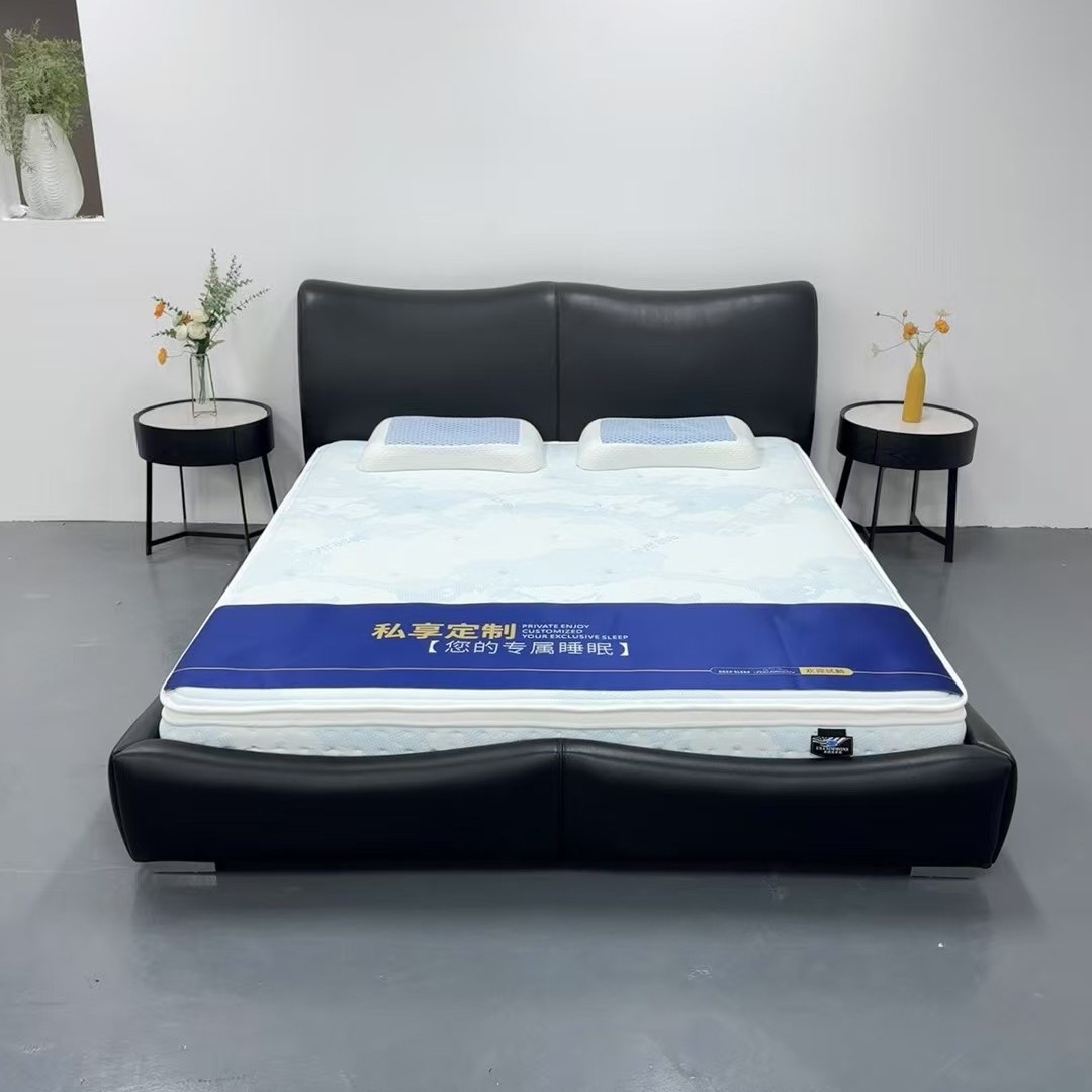 이탈리아 디자이너 대나무 가죽 침대 현대 가정용 검은색 1층 소가죽 침대 부드러운 포장 더블 마스터 침실 대형 침대스토어 가기