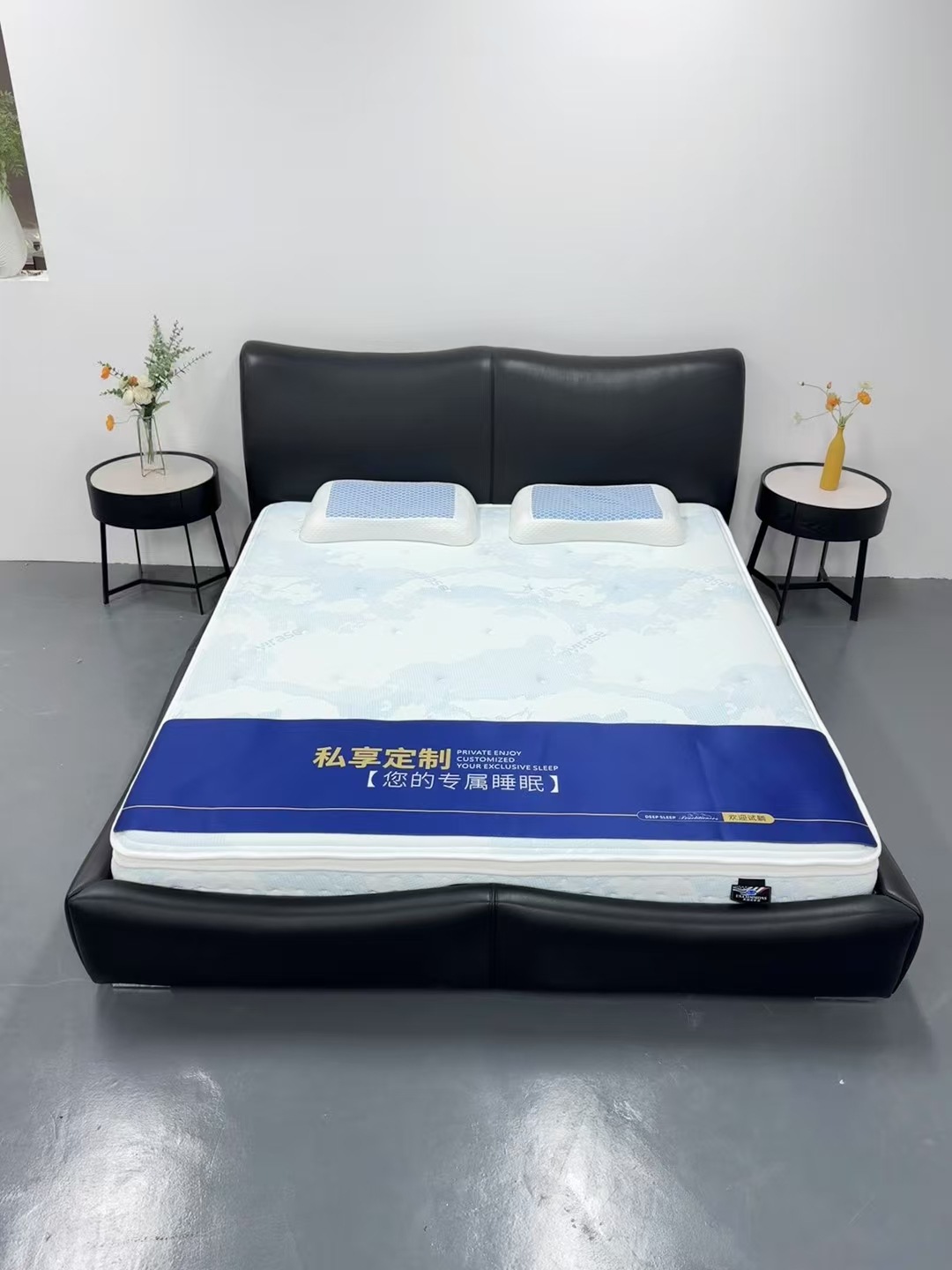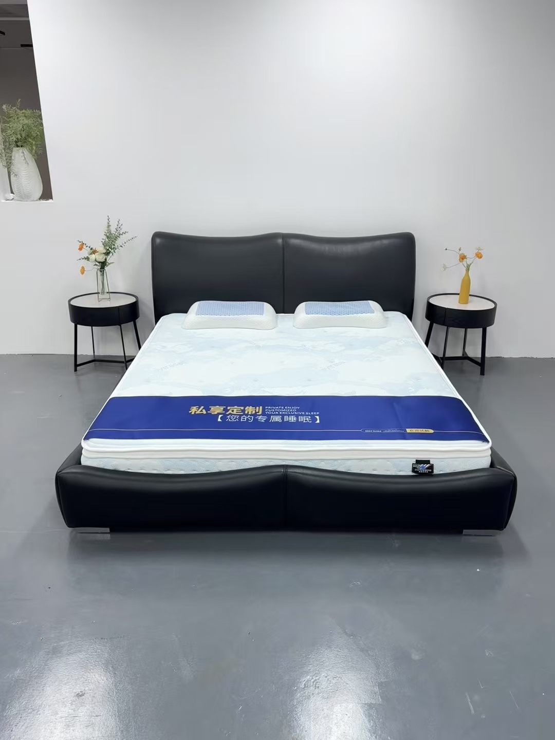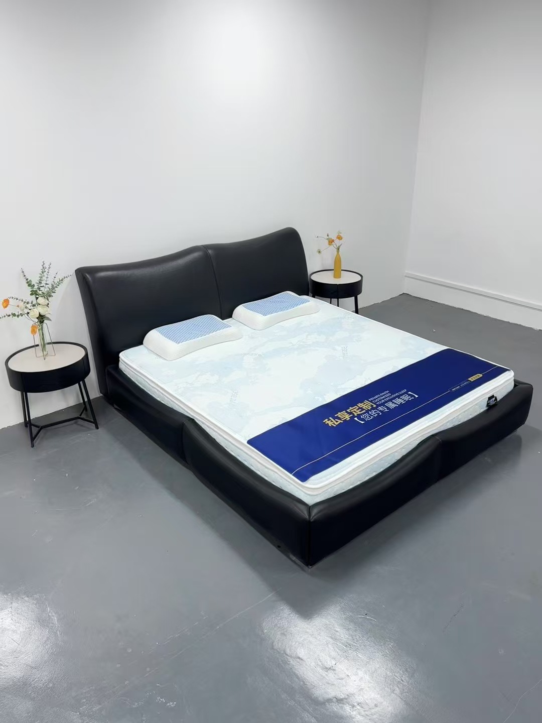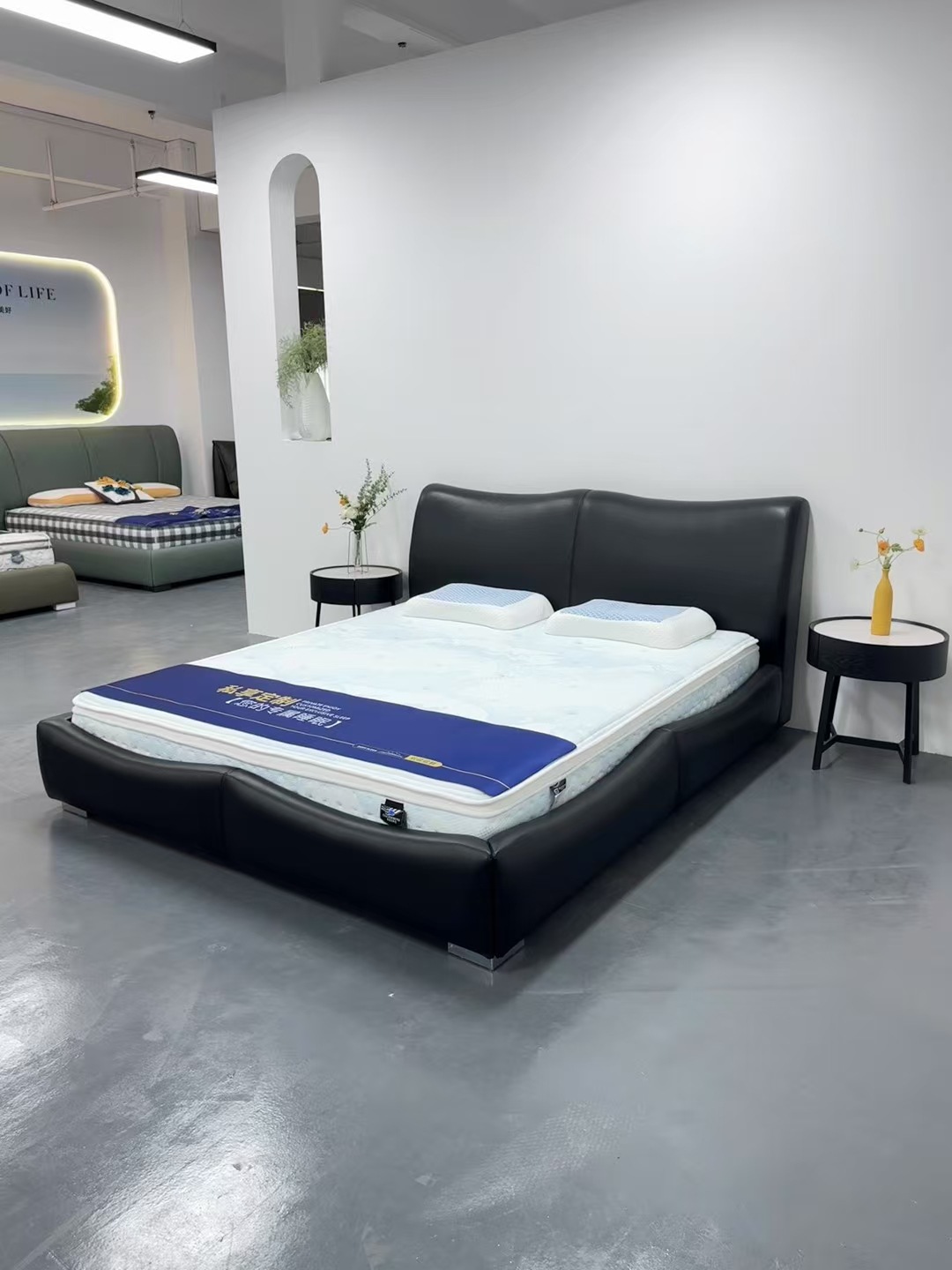 이탈리아 디자이너 대나무 가죽 침대 현대 가정용 검은색 1층 소가죽 침대 부드러운 포장 더블 마스터 침실 대형 침대스토어 가기