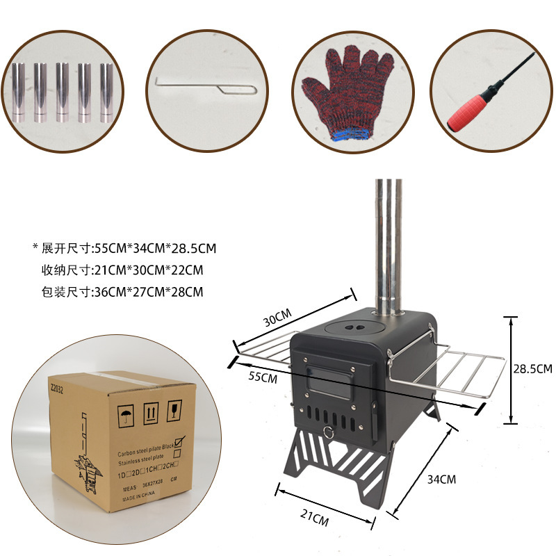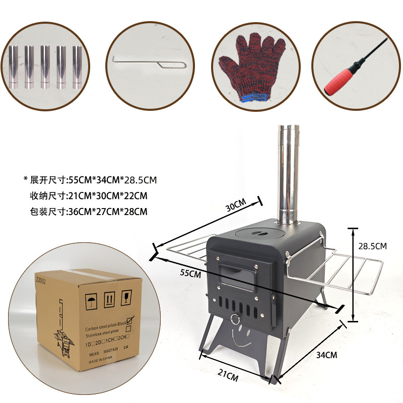 2025 새로운 국경 간 인기 판매 2032 소형 텐트 스토브 소형 야외 캠핑 스토브 피크닉 다기능 장작 스토브