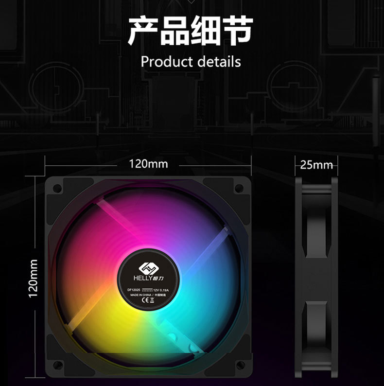 HELLY Hengli 데스크탑 컴퓨터 12CM 섀시 팬 4pinRGB 고정 컬러 CPU 라디에이터 PWM 온도 제어 음소거