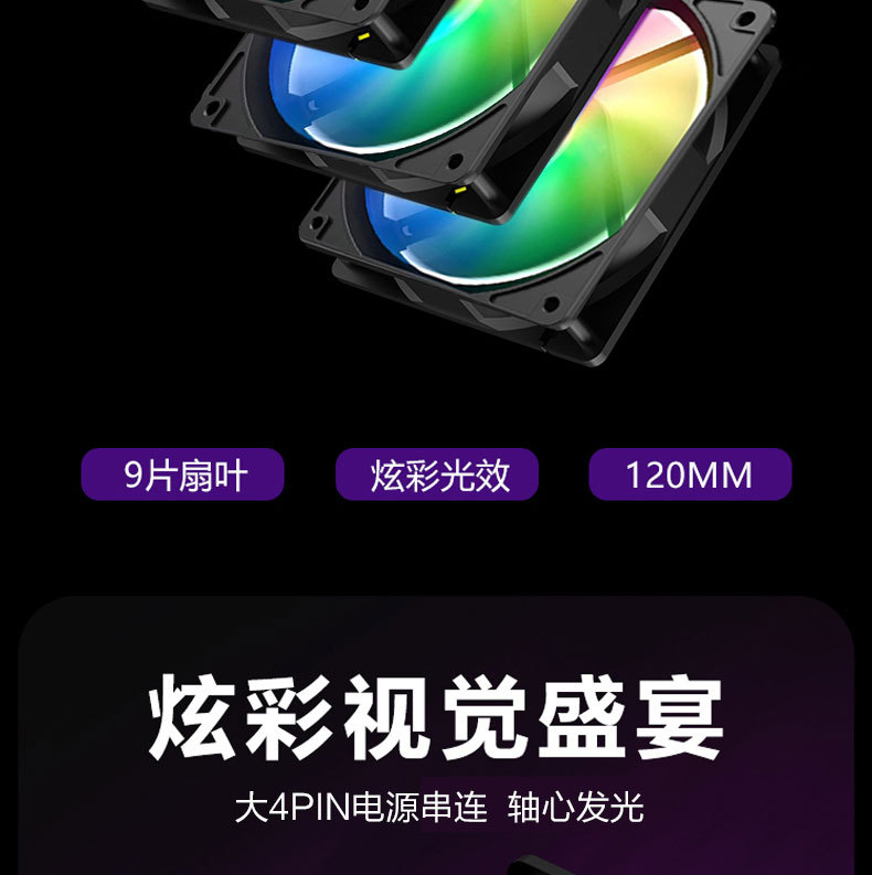 HELLY Hengli 데스크탑 컴퓨터 12CM 섀시 팬 4pinRGB 고정 컬러 CPU 라디에이터 PWM 온도 제어 음소거스토어 가기