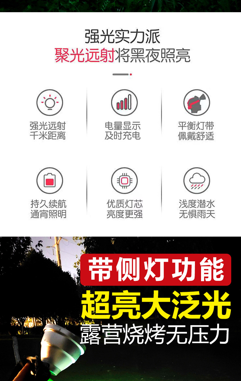 LED 실외 초고휘도 오버헤드 라이트, 초장기 배터리 수명, 리튬 배터리, 야외 강한 빛, 장거리 레이저 건 작업 조명, 도매 배송