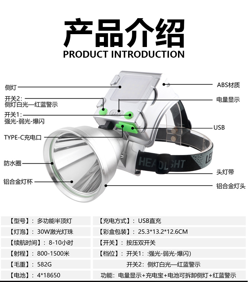 LED 실외 초고휘도 오버헤드 라이트, 초장기 배터리 수명, 리튬 배터리, 야외 강한 빛, 장거리 레이저 건 작업 조명, 도매 배송스토어 가기
