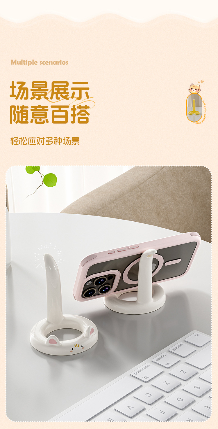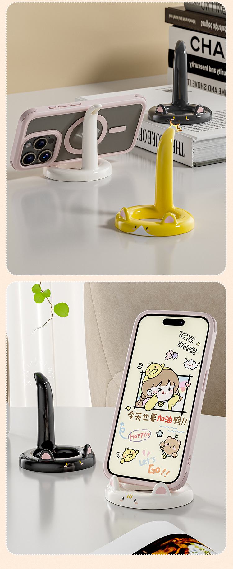 창의적인 새끼 고양이 휴대폰 홀더, 플라스틱 만화 귀여운 홀더, 식사 및 드라마 시청을 위한 홀더, 수평 및 수직으로 레이지 홀더로 사용 가능