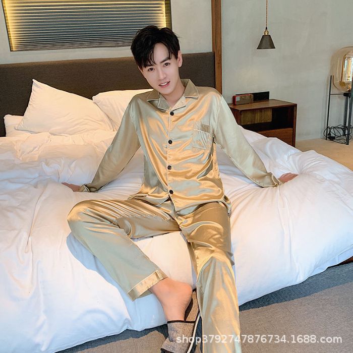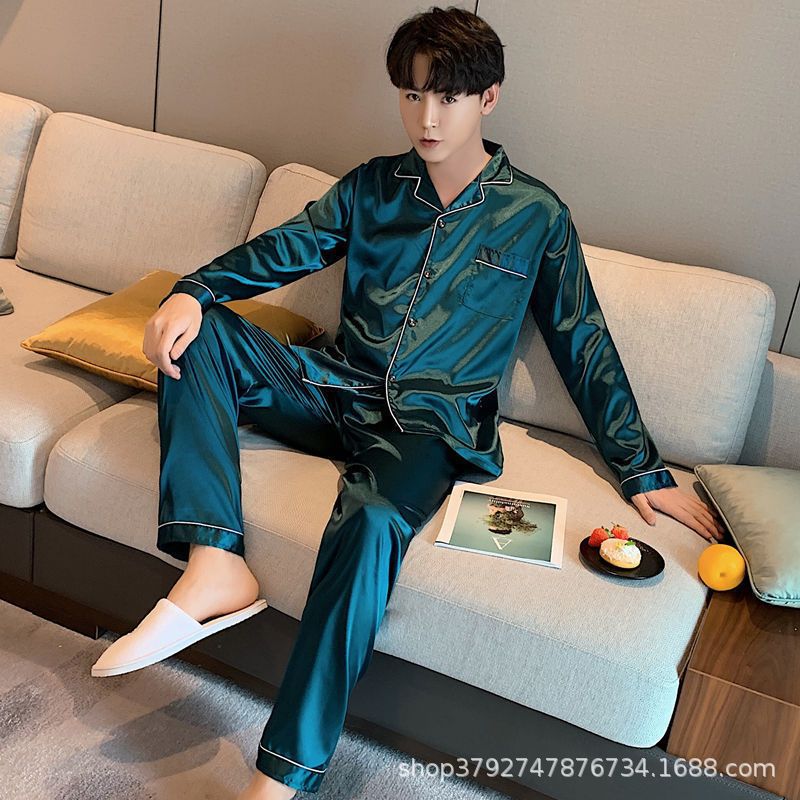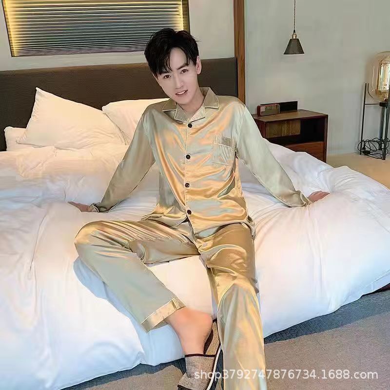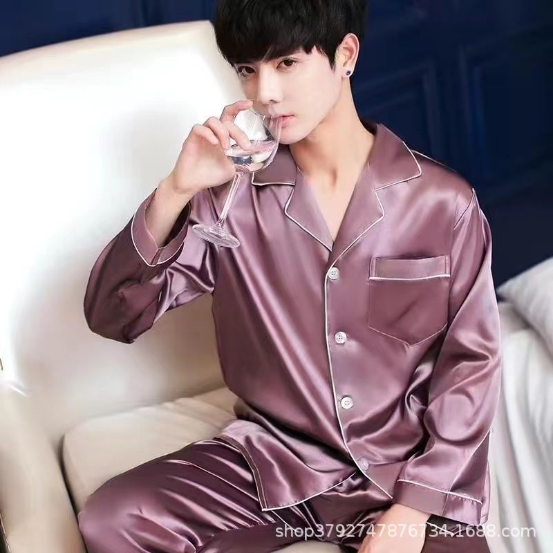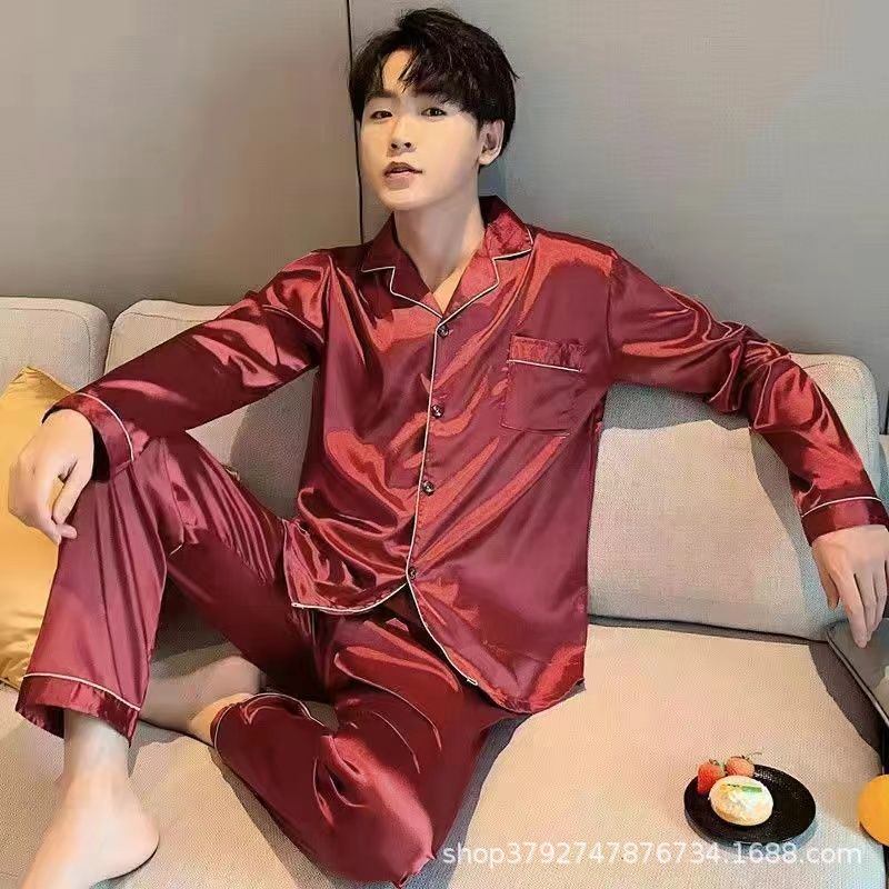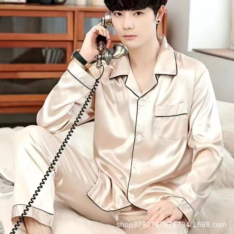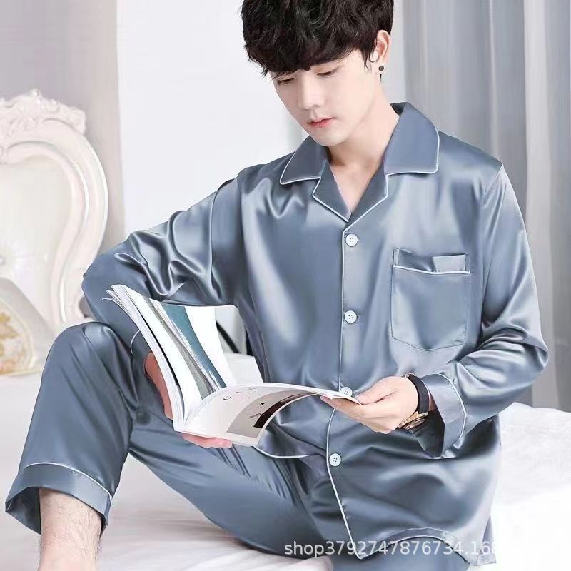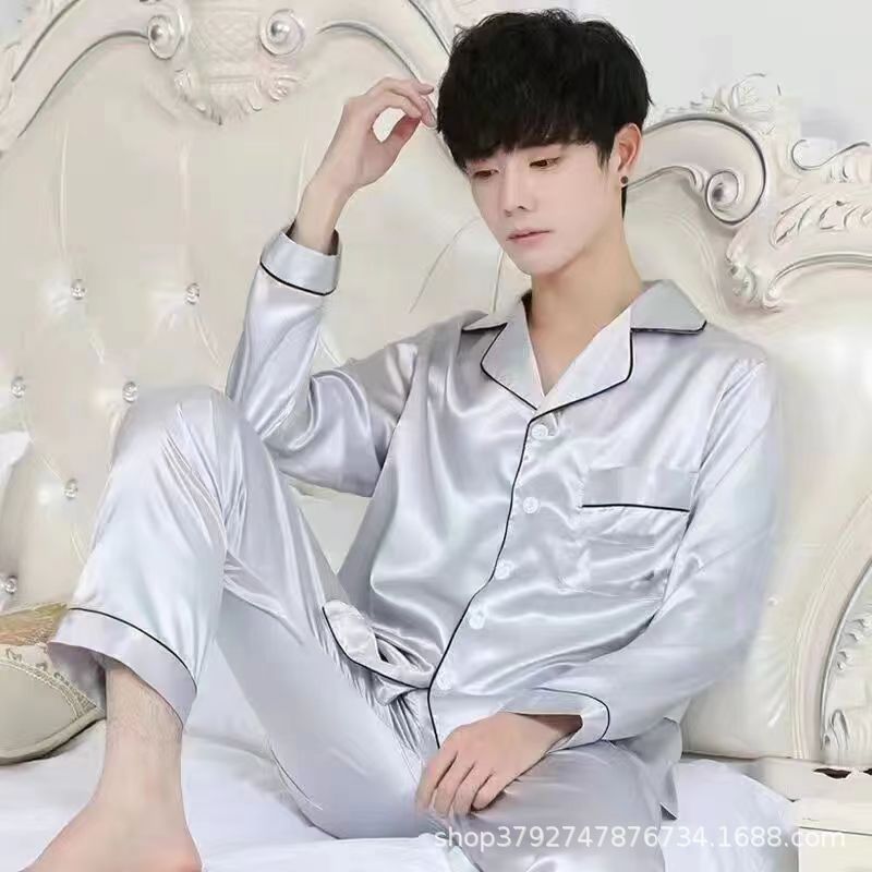 국경 간 도매 여름 얼음 실크 잠옷 남성용 대형 반팔 반바지 여성용 플러스 사이즈 모조 실크 홈웨어 세트스토어 가기
