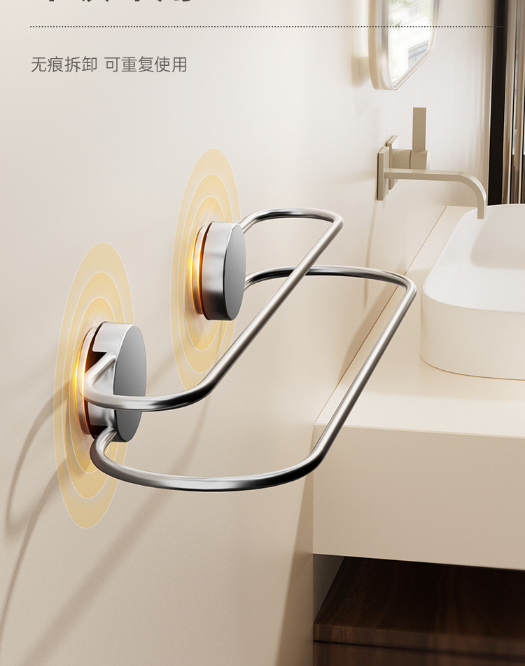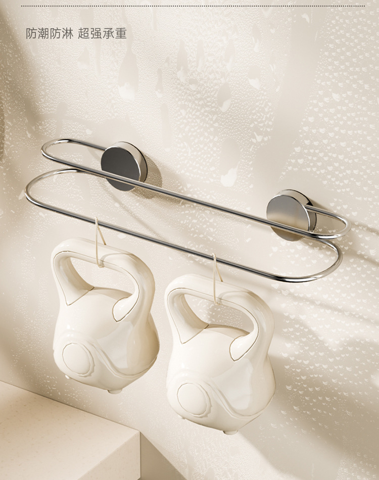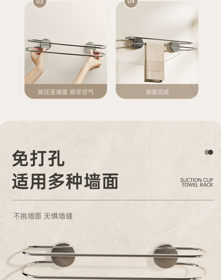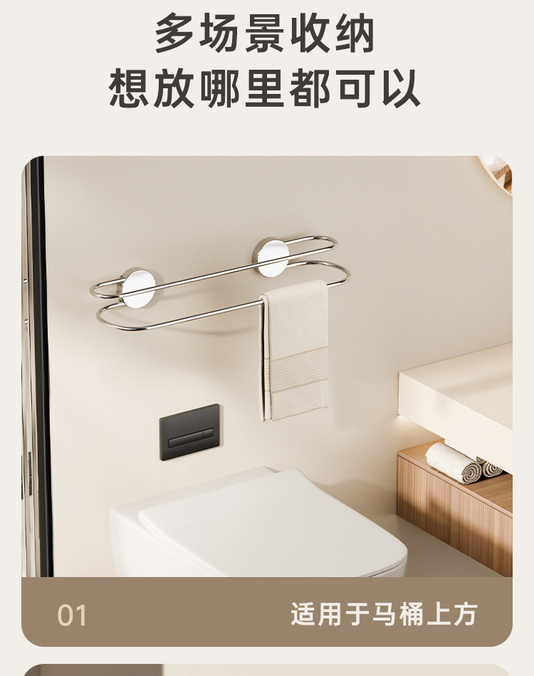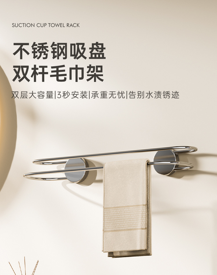 吸盘毛巾架批发卫生间免打孔浴室置物不锈钢双杆浴巾架毛巾收纳架