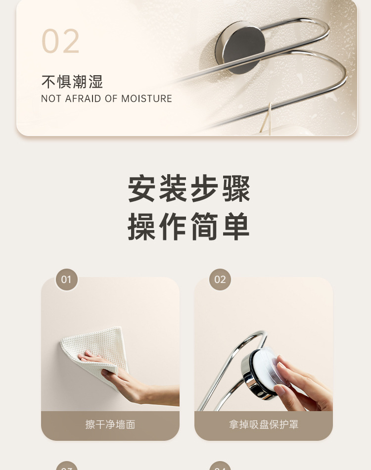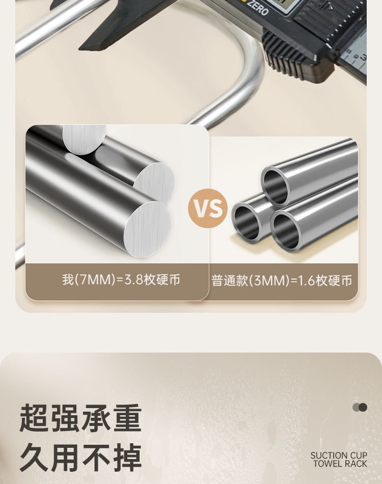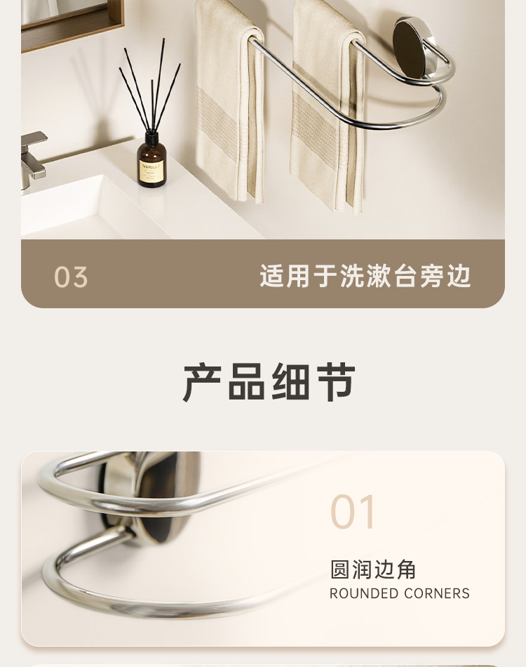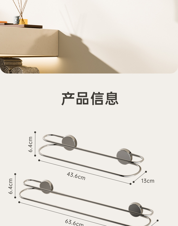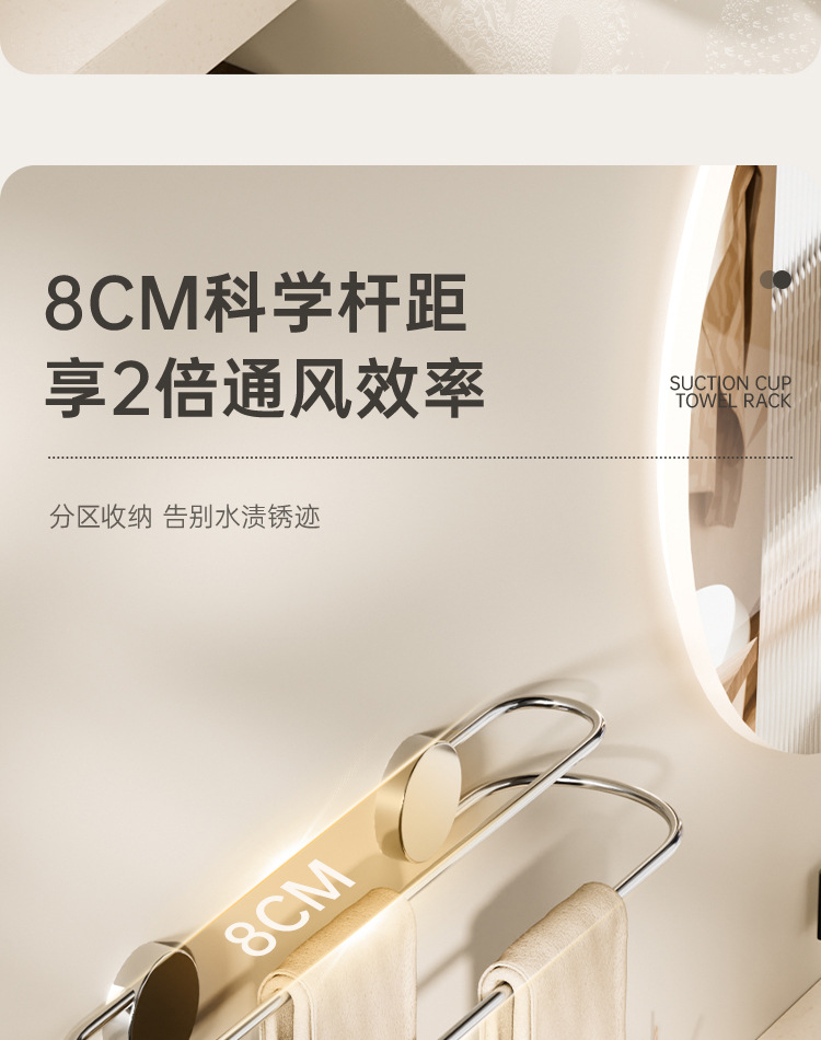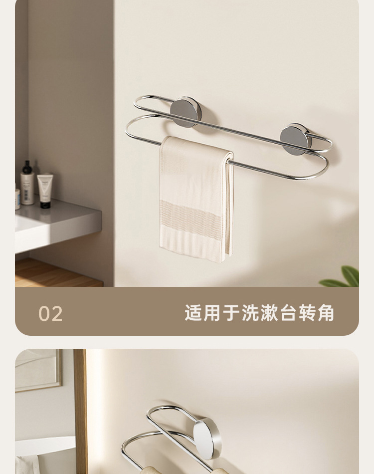 吸盘毛巾架批发卫生间免打孔浴室置物不锈钢双杆浴巾架毛巾收纳架
