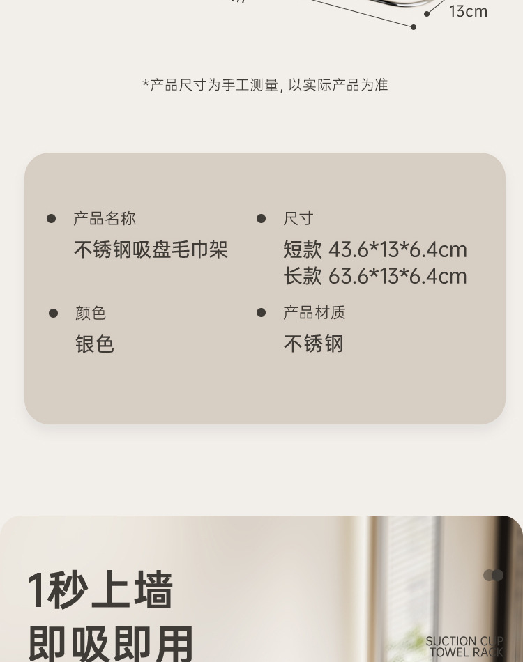 • 흡착컵 수건걸이 [실버 쇼트 스타일]
