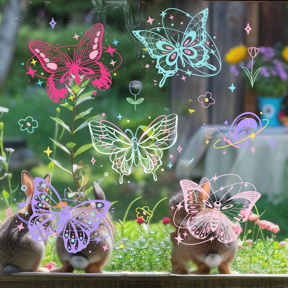 Yiyao JD3483 국경 간 새로운 손으로 그린 만화 컬러 나비 창 스티커 상점 유리 장식 접착제없는 정전기 스티커스토어 가기