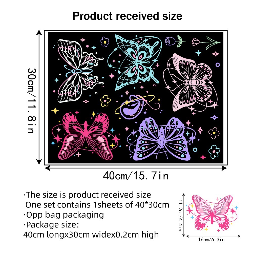 Yiyao JD3483 국경 간 새로운 손으로 그린 만화 컬러 나비 창 스티커 상점 유리 장식 접착제없는 정전기 스티커