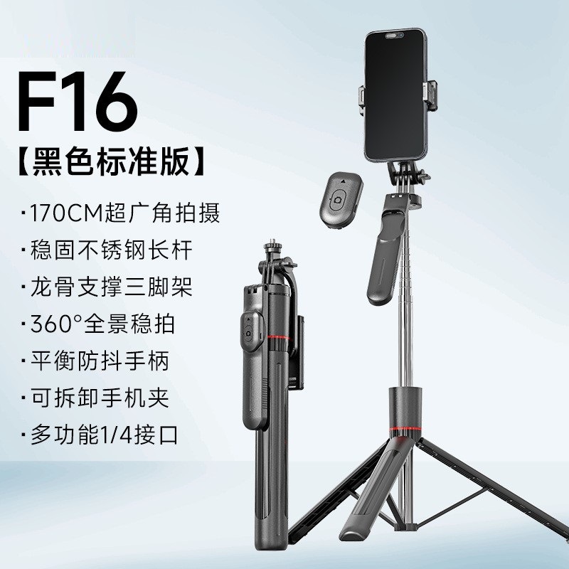 • F16 [블랙 스탠다드 에디션] 1.7m 스테인레스 스틸 폴*밸런스 핸들*1/4 인터페이스*블루투스 리모컨