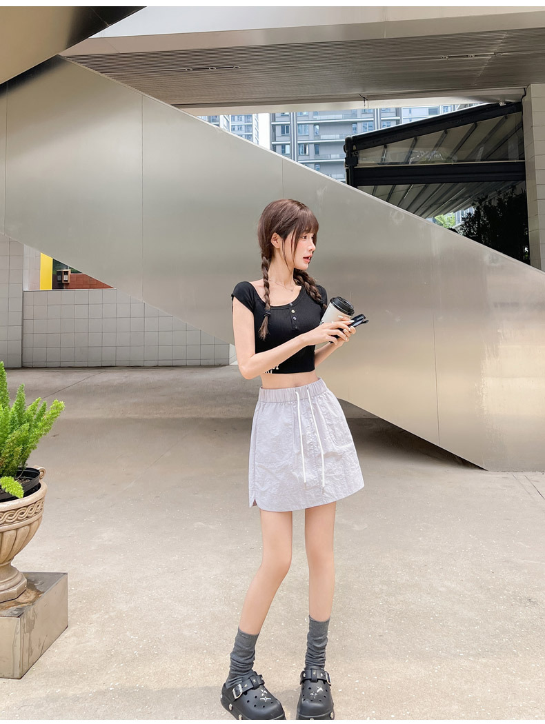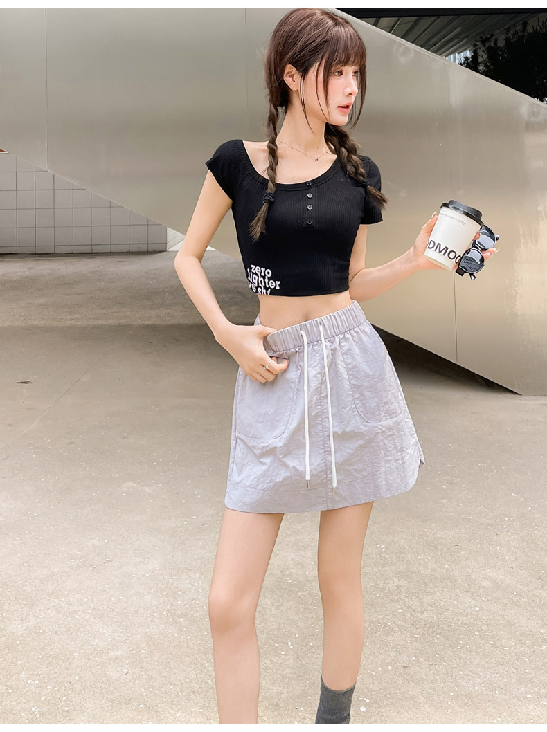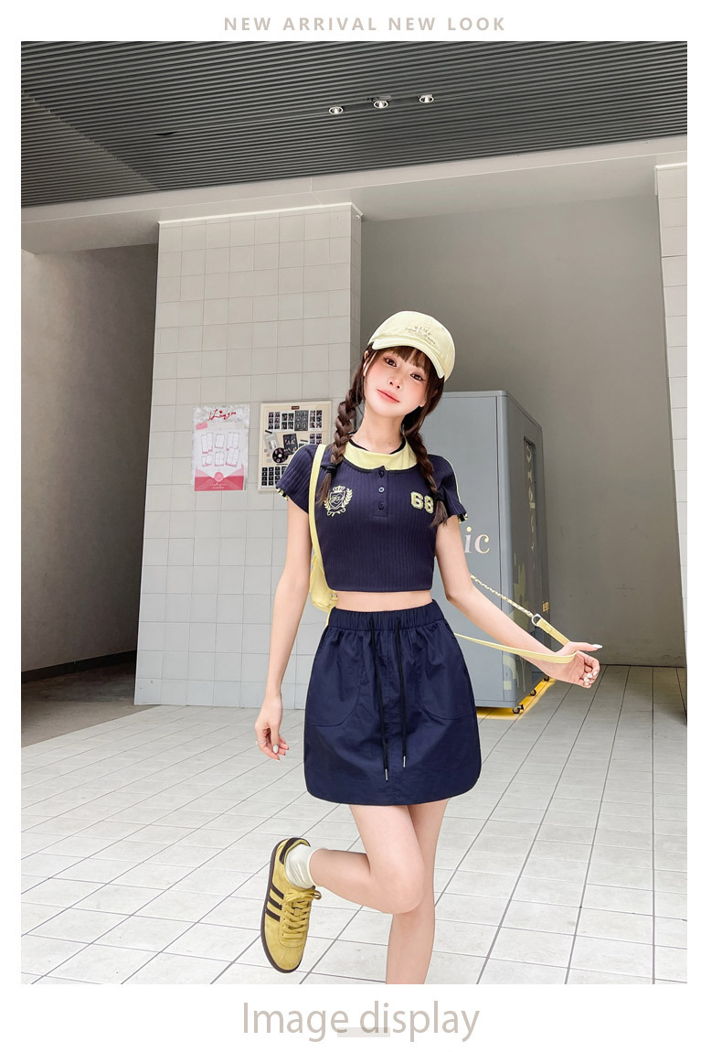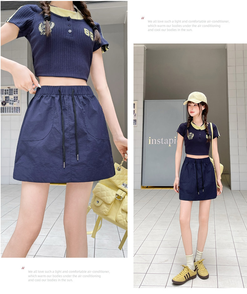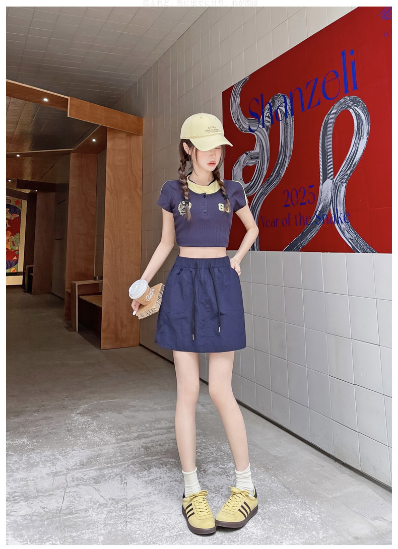 2025 대학 스타일 네이비 블루 울트라 쇼트 핫 소녀 노출 방지 속건성 A 라인 신축성있는 허리 캐주얼 스커트 여성용스토어 가기