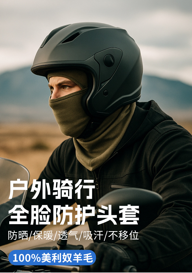 메리노 울 헤드기어 오토바이 자외선 차단 라이딩 마스크 남성용 보온 스키 얼굴 보호 여성용 땀 흡수 마스크 모자스토어 가기