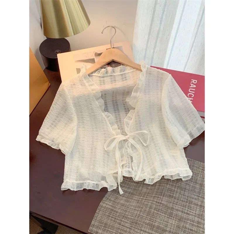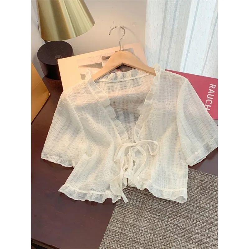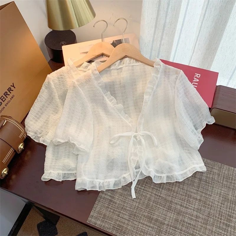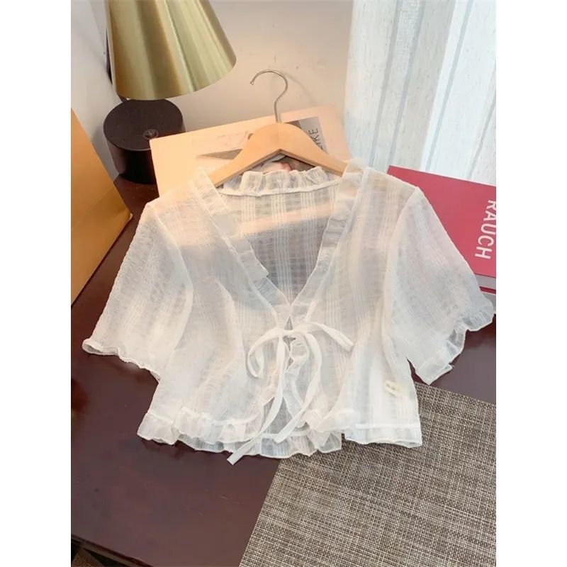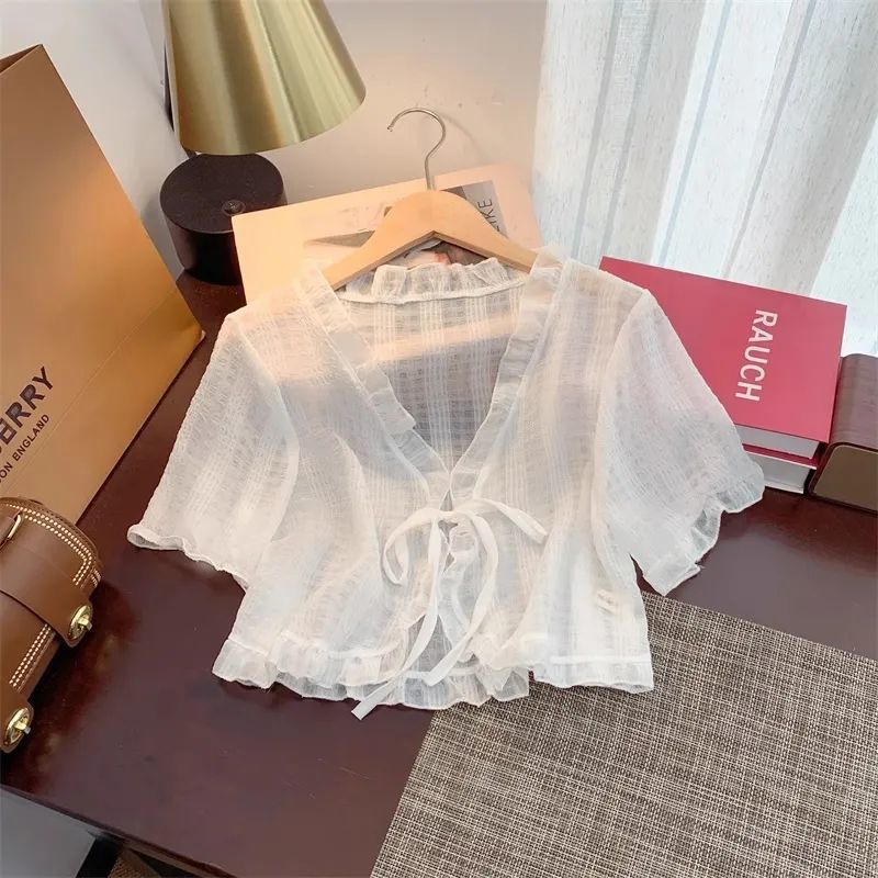 슈퍼 스위트 쉬폰 자외선 차단 카디건 여름 신작 루즈한 짧은 다용도 숄과 서스펜더 스커트 반팔 재킷스토어 가기