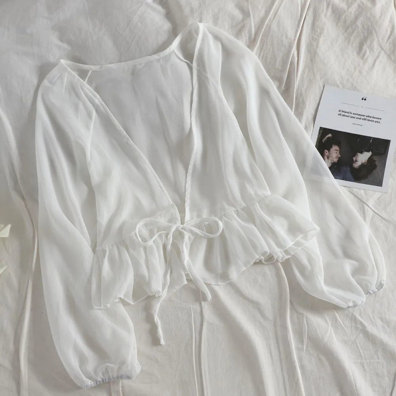 슈퍼 스위트 쉬폰 자외선 차단 카디건 여름 신작 루즈한 짧은 다용도 숄과 서스펜더 스커트 반팔 재킷