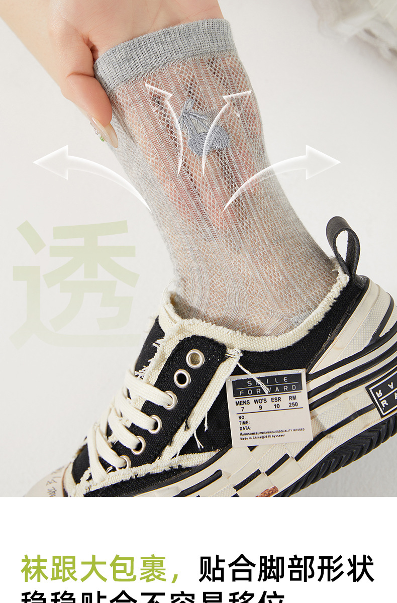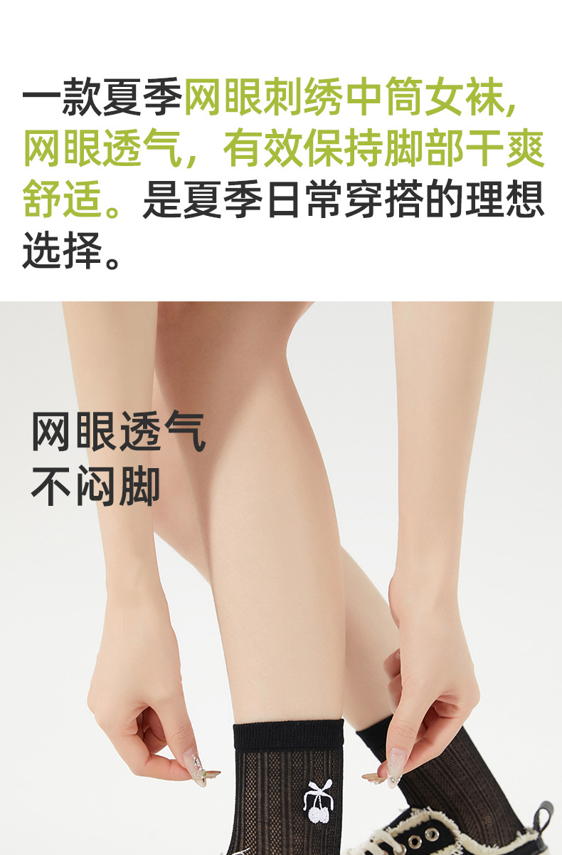 여성용 맞춤형 양말 봄 여름 얇은 메쉬 통기성 자수 종아리 양말 항균 땀 흡수 및 탈취제 발레 스타일 양말