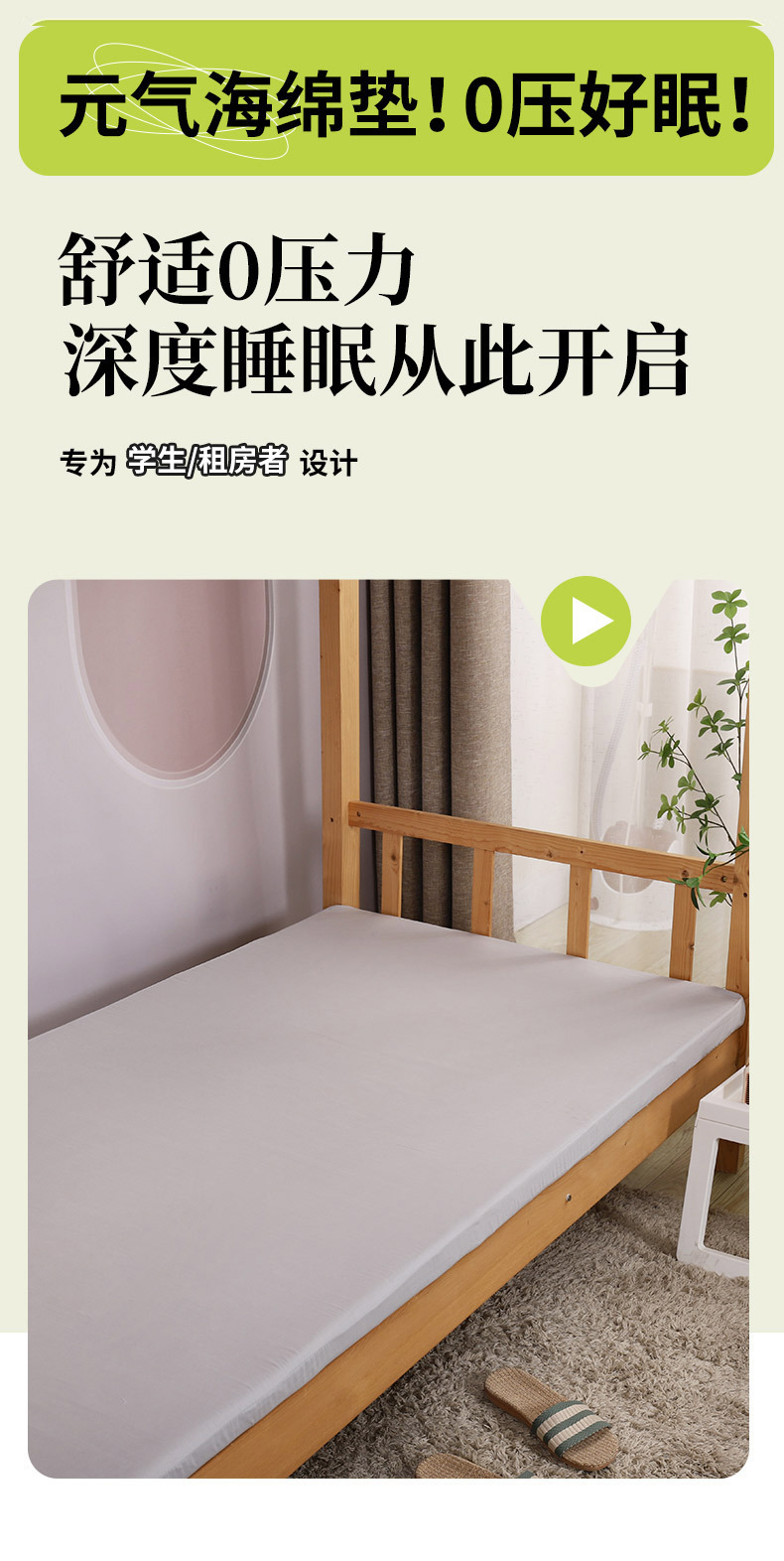 학생 기숙사 스펀지 매트리스 싱글 기숙사 이층 침대 90×190cm 두꺼운 부드러운 쿠션 다다미스토어 가기
