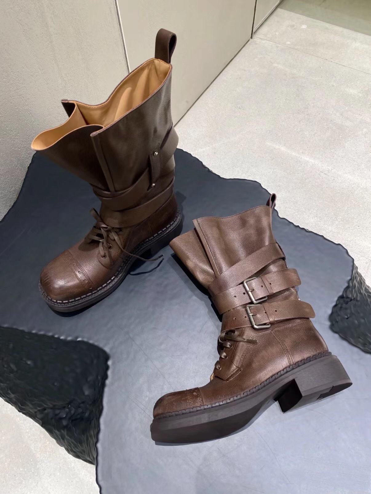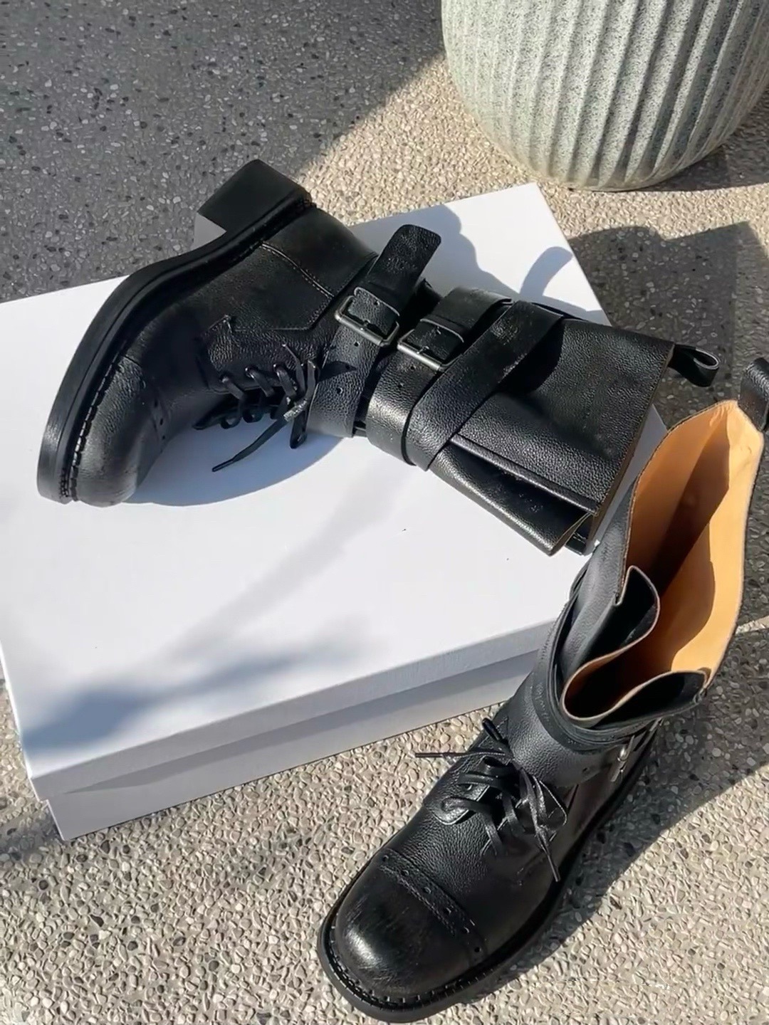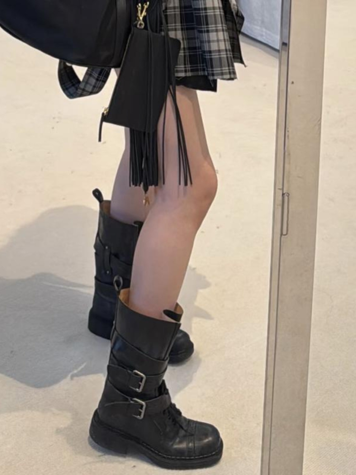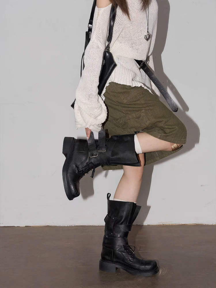 소가죽 버전 ~ 여성용 천연가죽 두꺼운 밑창 숏 라이더 부츠, 레트로 벨트 버클 오토바이 부츠, 여성용 웨스턴 숏부츠, 마틴 부츠스토어 가기