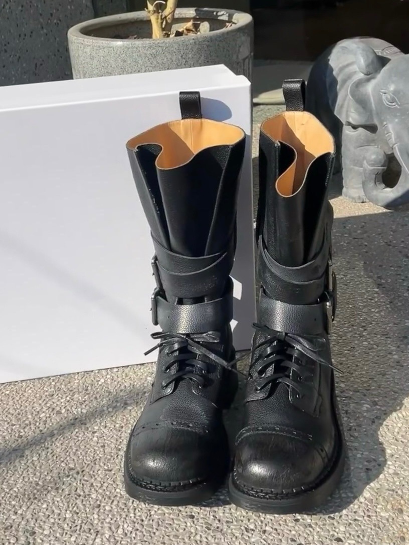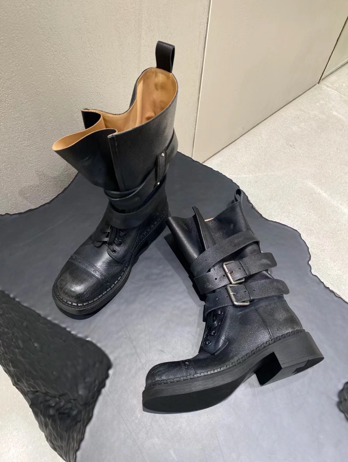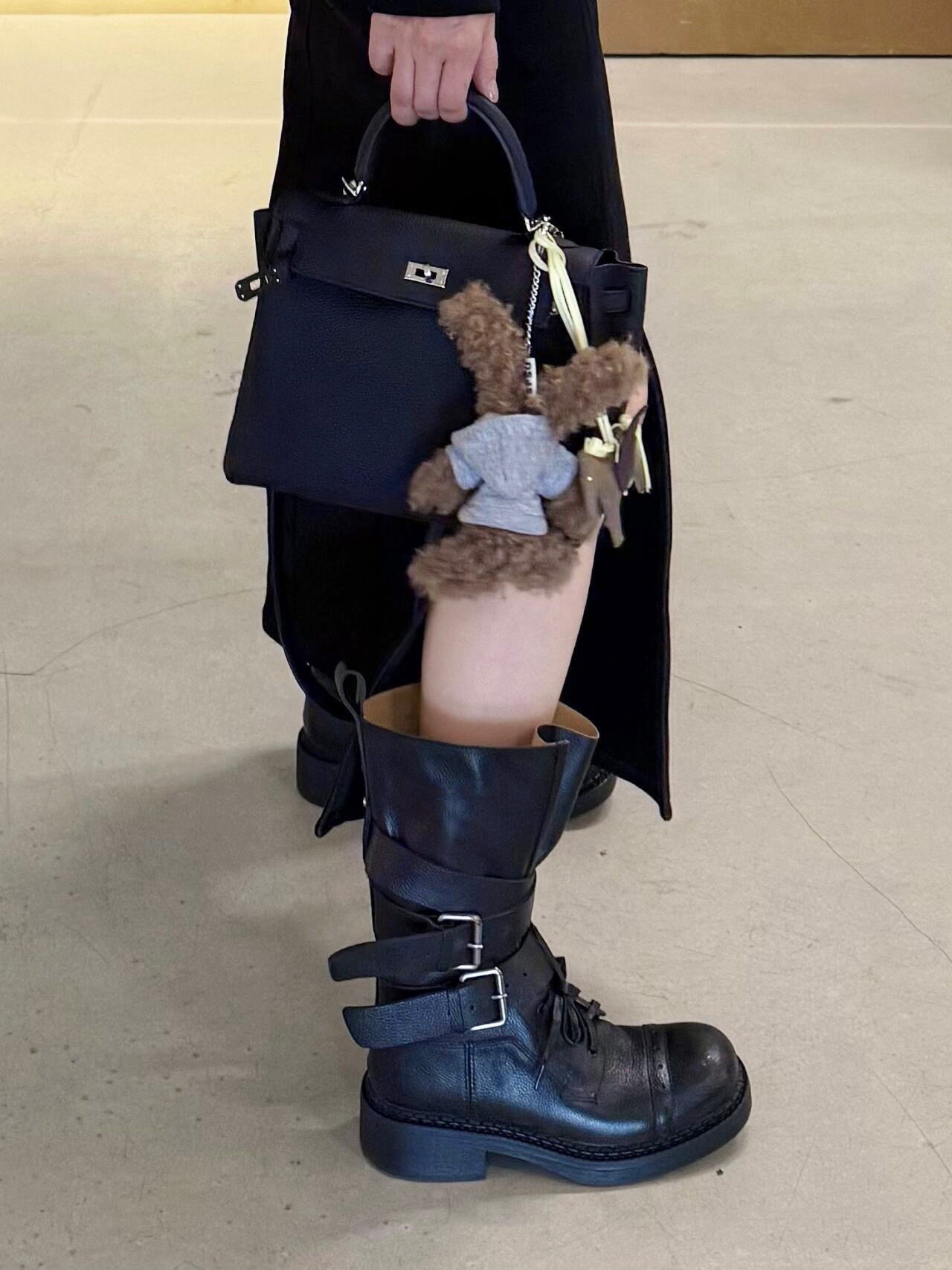 소가죽 버전 ~ 여성용 천연가죽 두꺼운 밑창 숏 라이더 부츠, 레트로 벨트 버클 오토바이 부츠, 여성용 웨스턴 숏부츠, 마틴 부츠스토어 가기