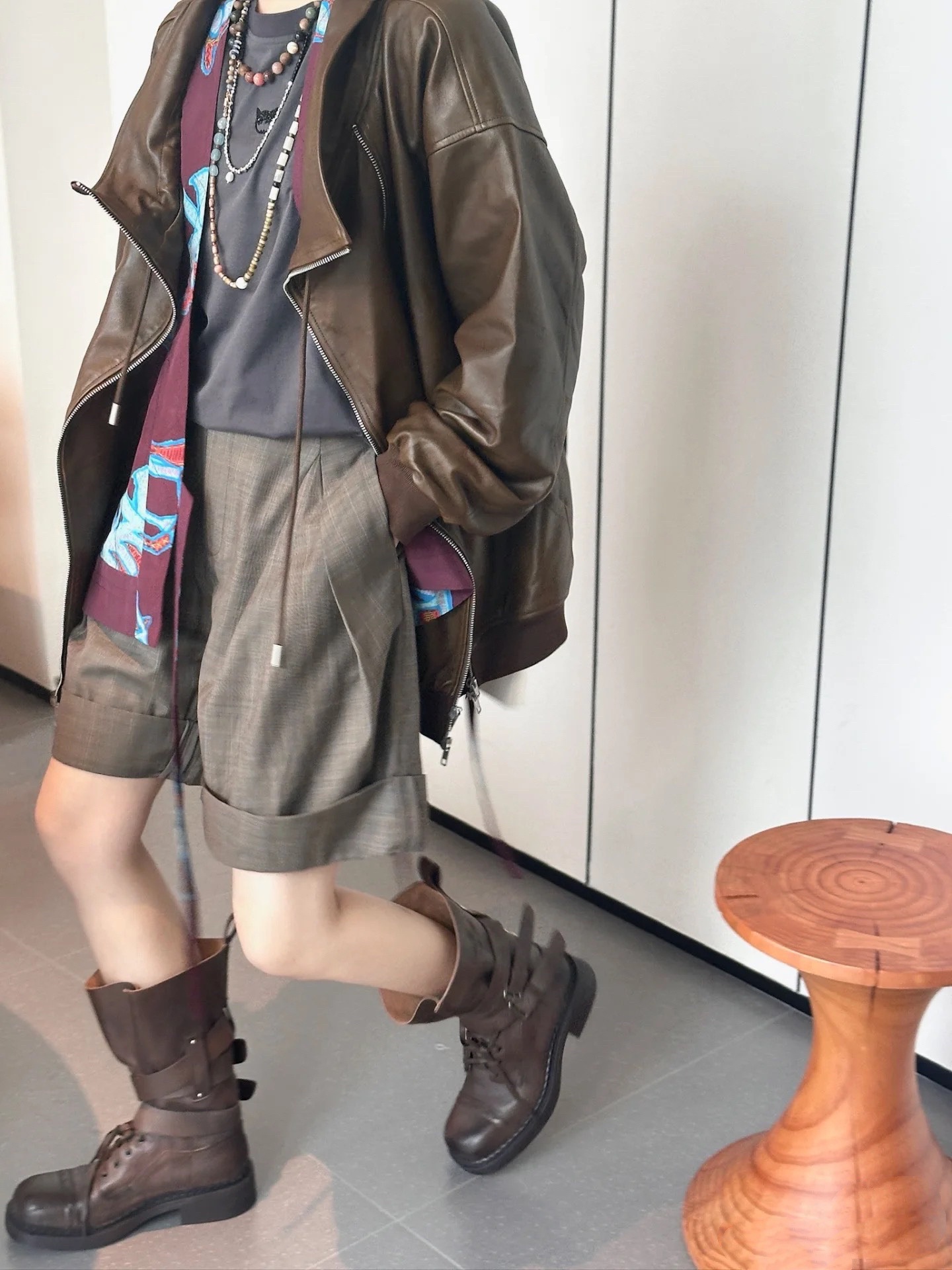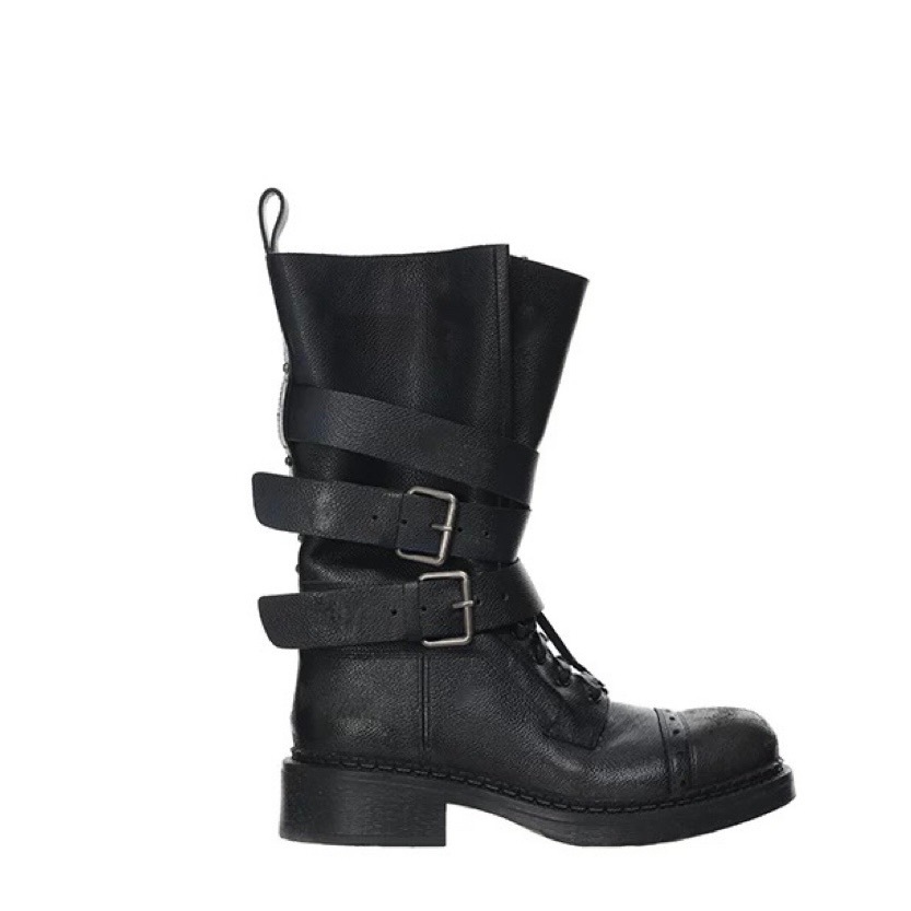 소가죽 버전 ~ 여성용 천연가죽 두꺼운 밑창 숏 라이더 부츠, 레트로 벨트 버클 오토바이 부츠, 여성용 웨스턴 숏부츠, 마틴 부츠