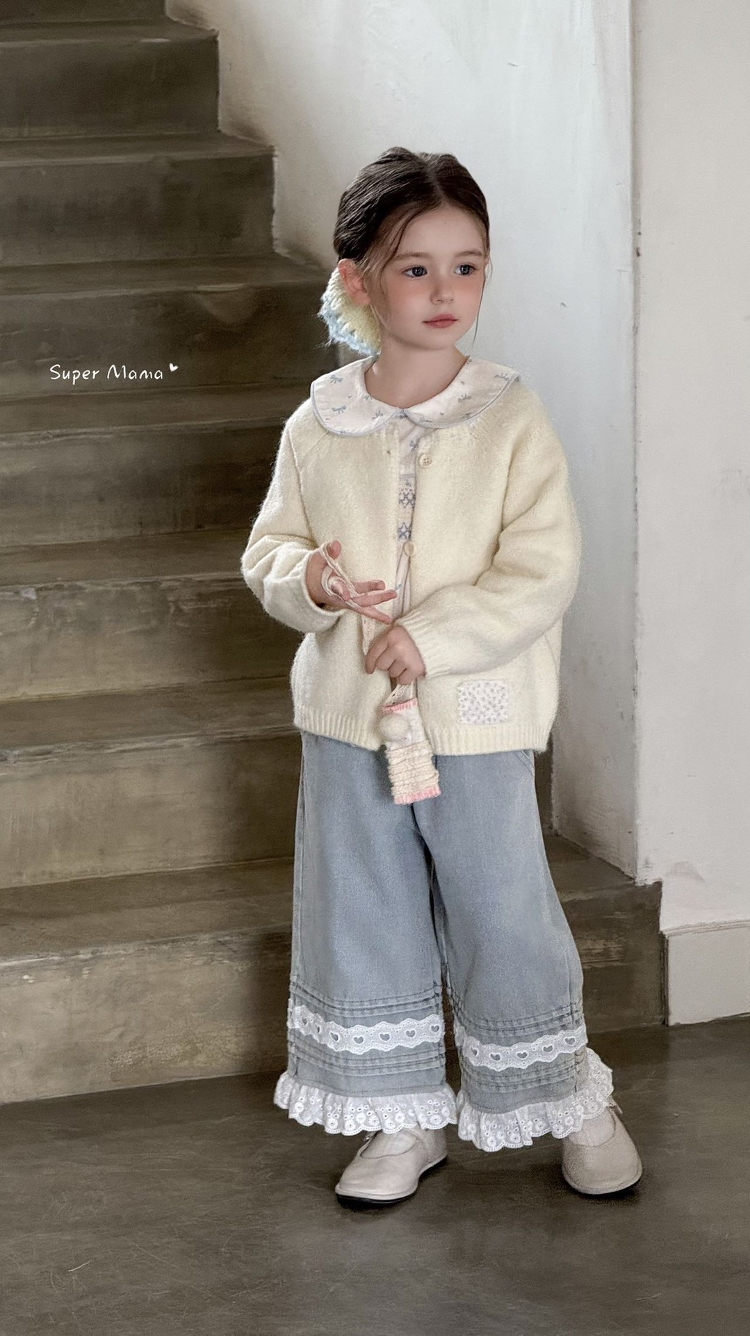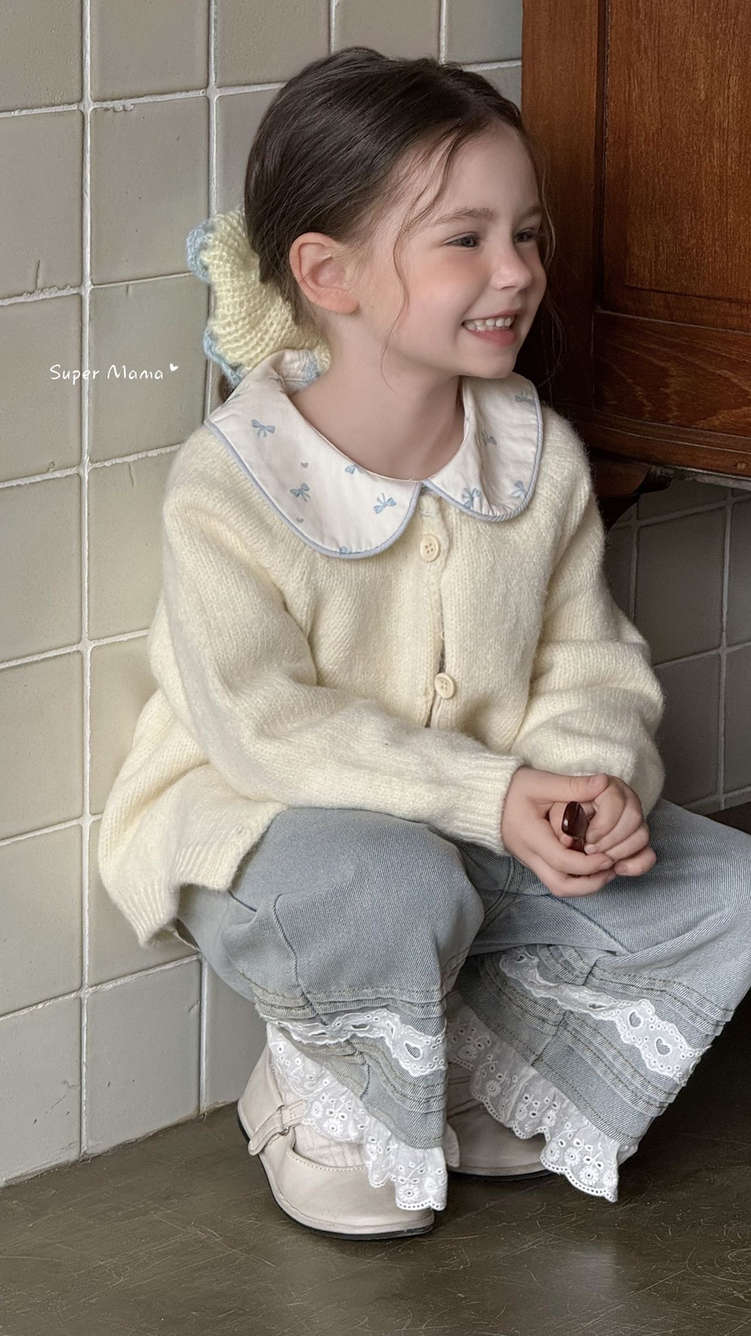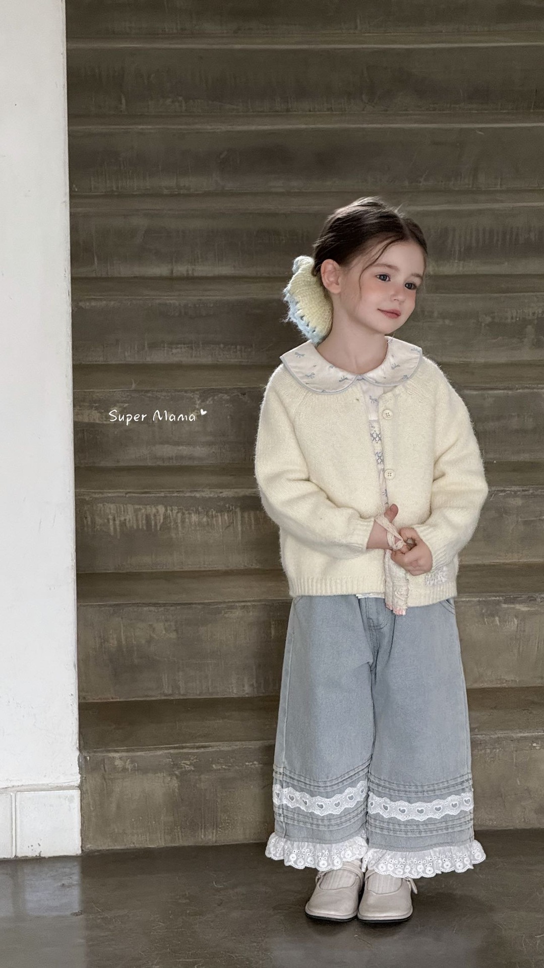 여아 스웨터 가디건 아동 니트 재킷 2025 가을 새로운 스타일 레이스 캐주얼하고 세련된 여아 및 여아용