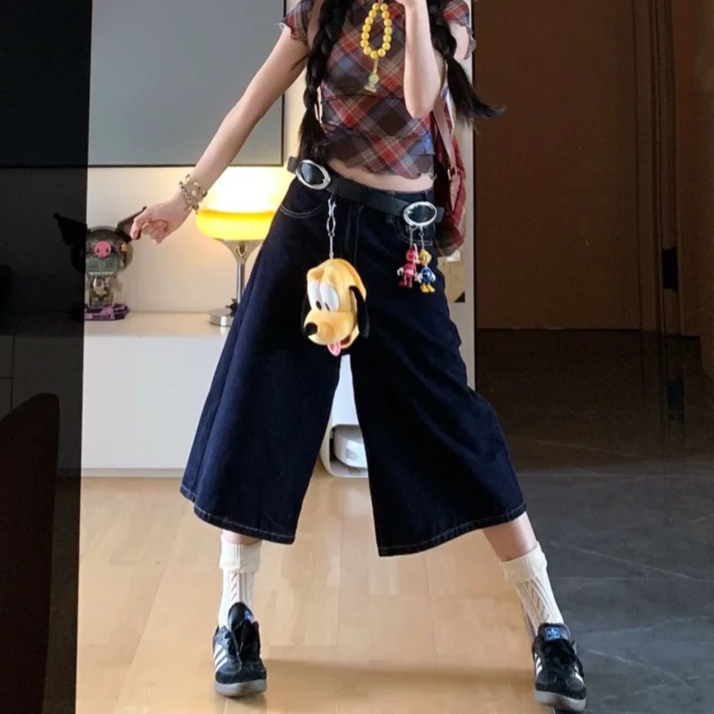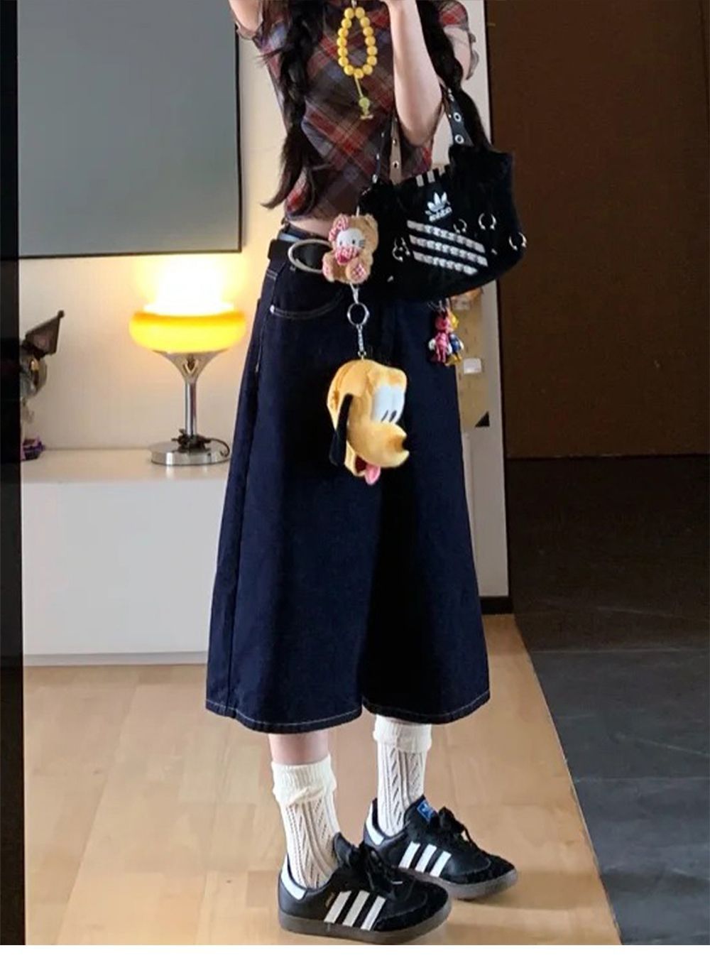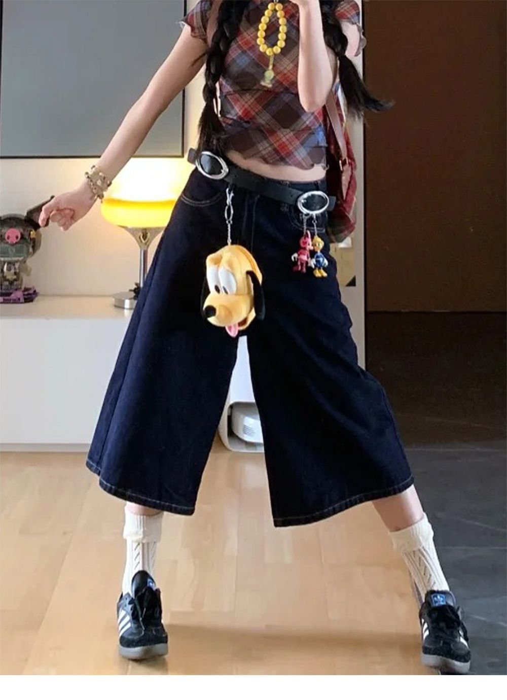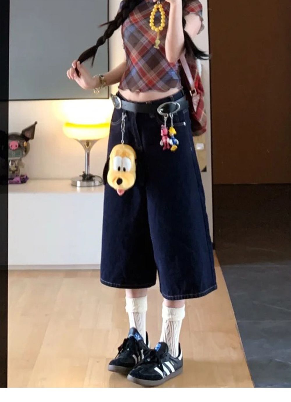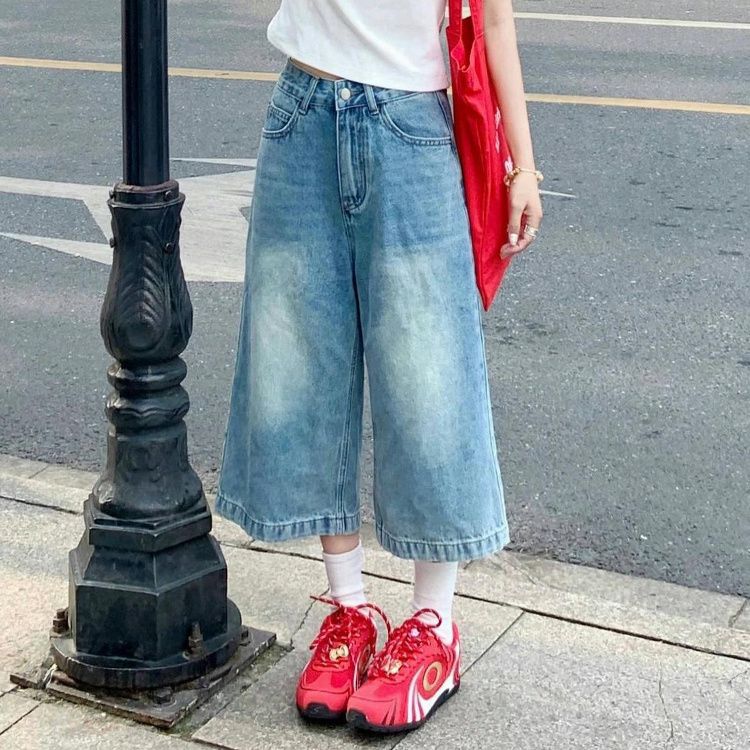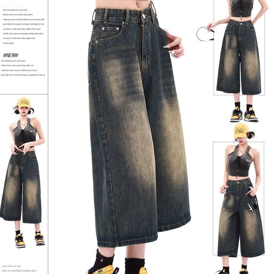 여성용 크롭 팬츠 여름 얇은 2025 새로운 진한 파란색 와이드 레그 루즈 청바지 플러스 사이즈 뚱뚱한 mm 슬리밍 중간 바지스토어 가기