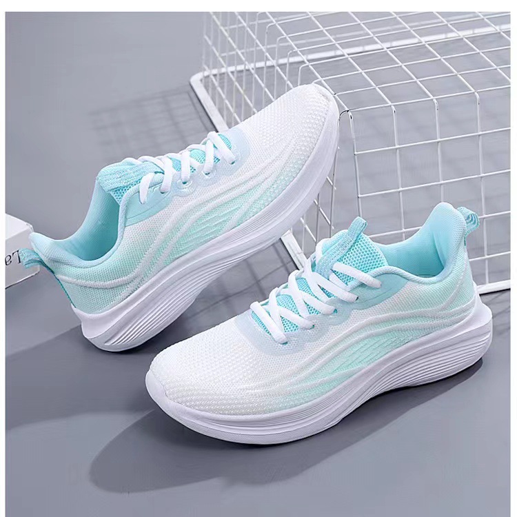 공장 도매 여성 신발 봄과 여름 새로운 스타일 편안하고 통기성 운동화 여성 두꺼운 밑창 경량 리바운드 플라이 짠 스포츠 신발