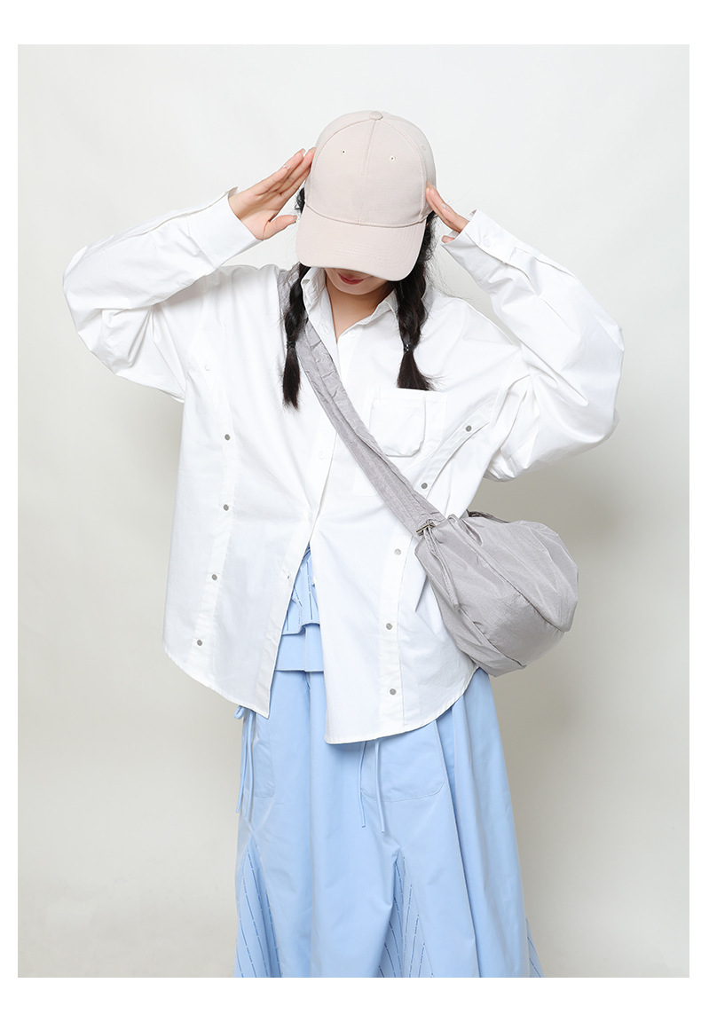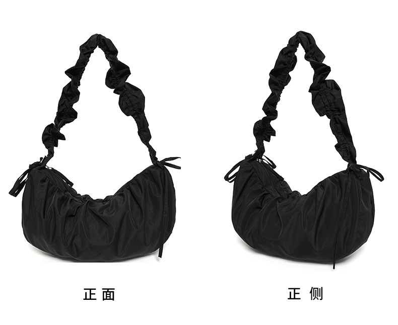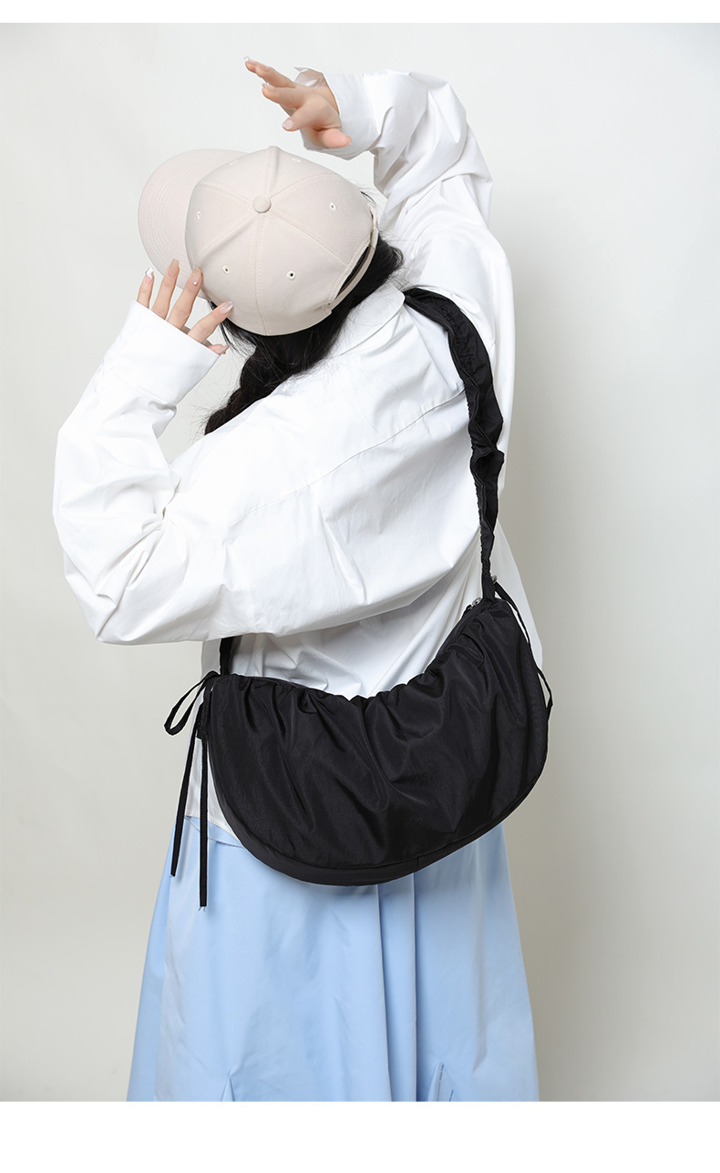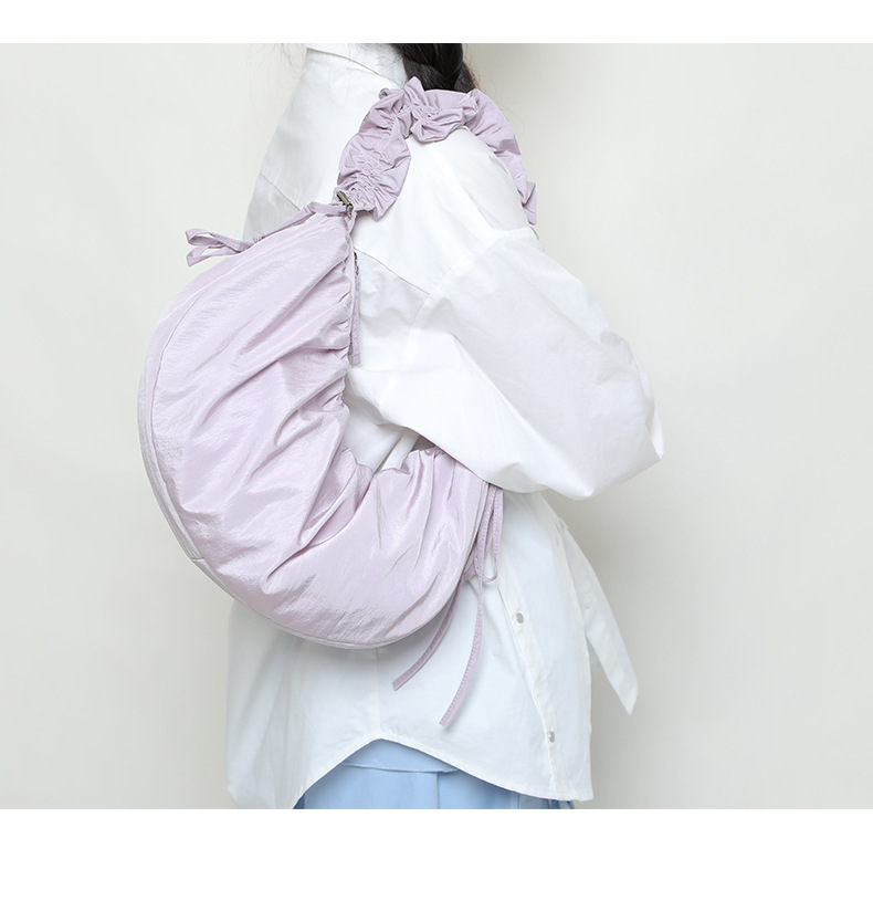 봄 한국식 주름 휴대용 클라우드 백, 신선하고 예술적인 폴리에스터 만두 백, 게으른 스타일의 방수 초승달 백
