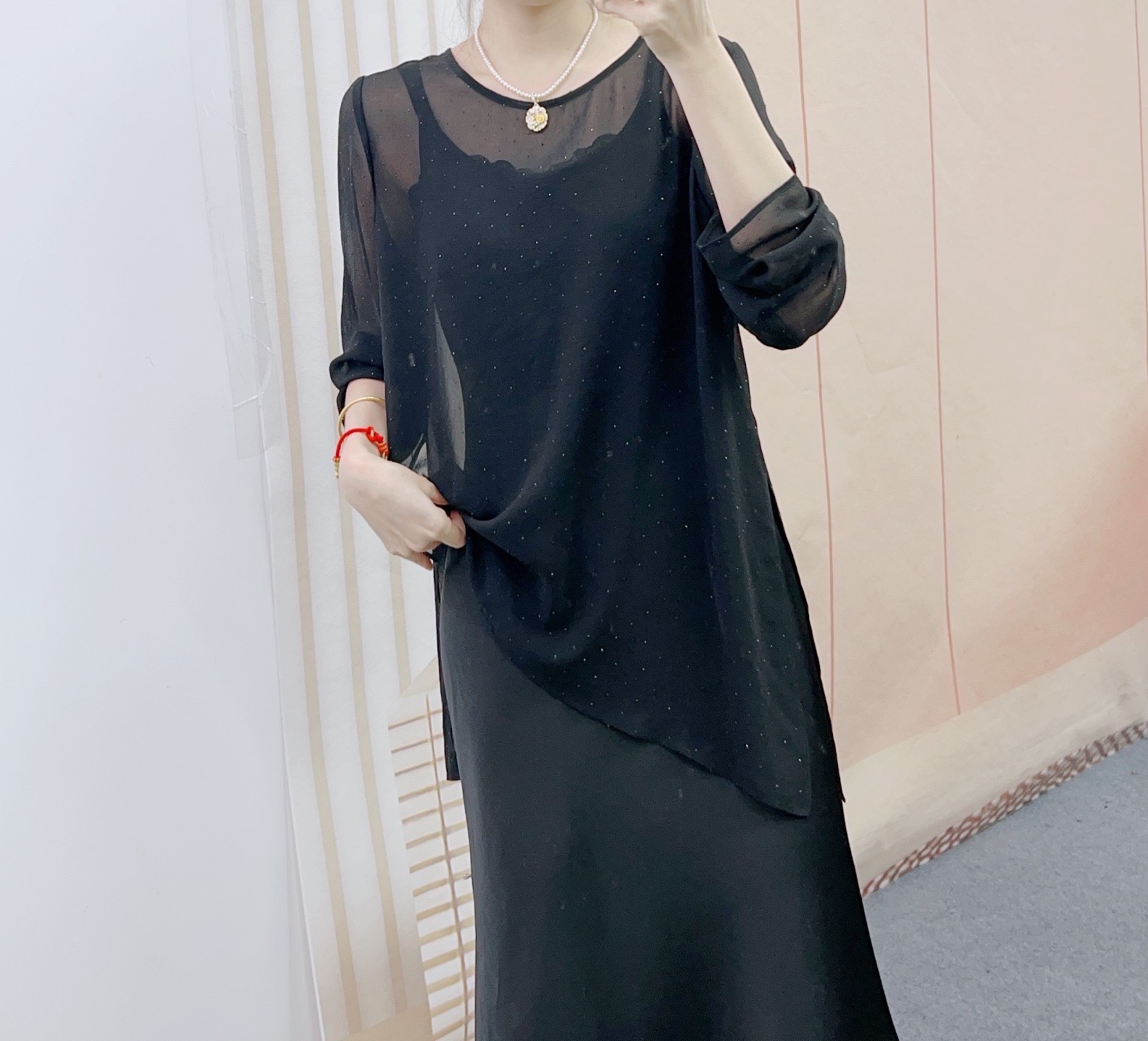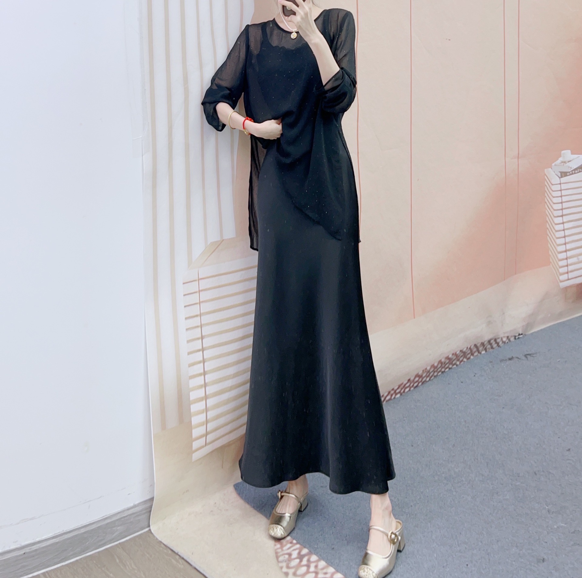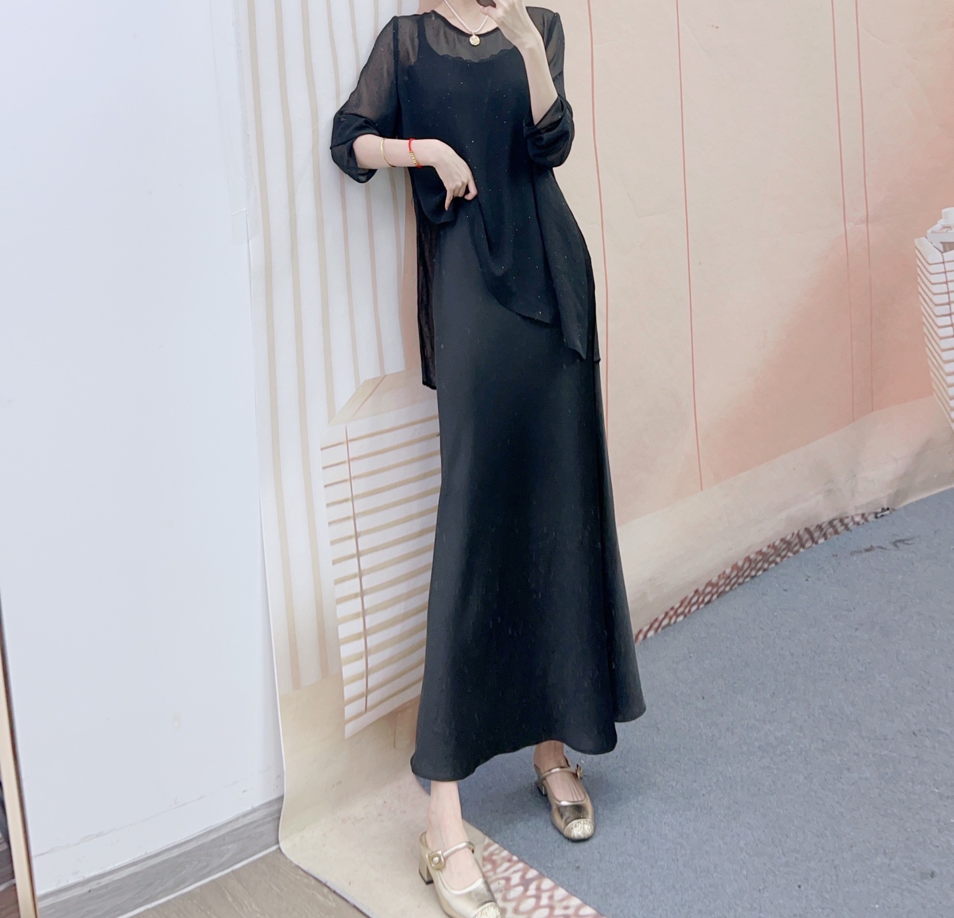2025 스타일 통근 다용도 루즈 핫 다이아몬드 블라우스 + 슬림 서스펜더 드레스 투피스 스커트 188스토어 가기