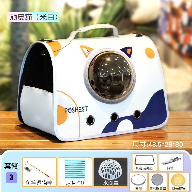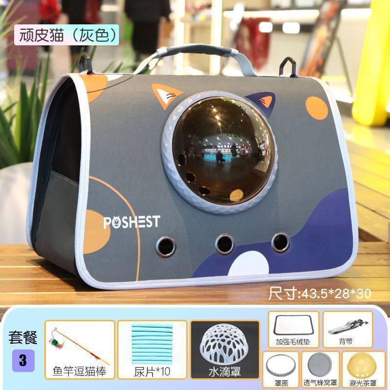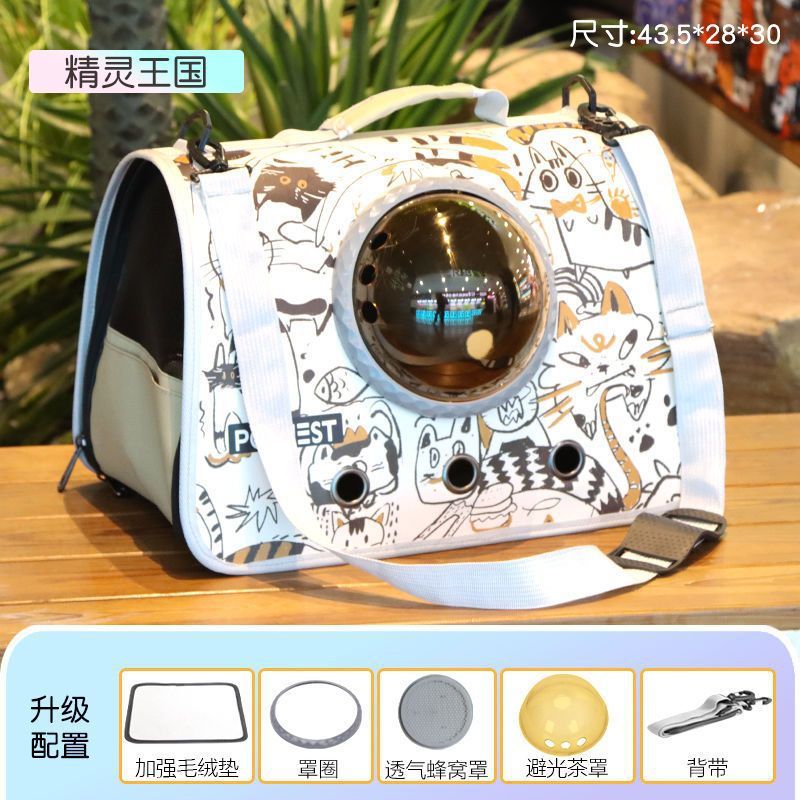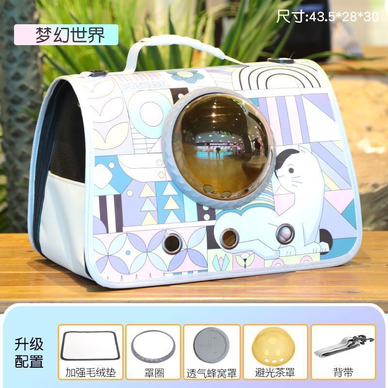 고양이 가방, 휴대용 어깨 크로스 바디 애완 동물 배낭, 개와 고양이 휴대용 학교 가방, 우주 캡슐, 통기성 및 스트레스 방지