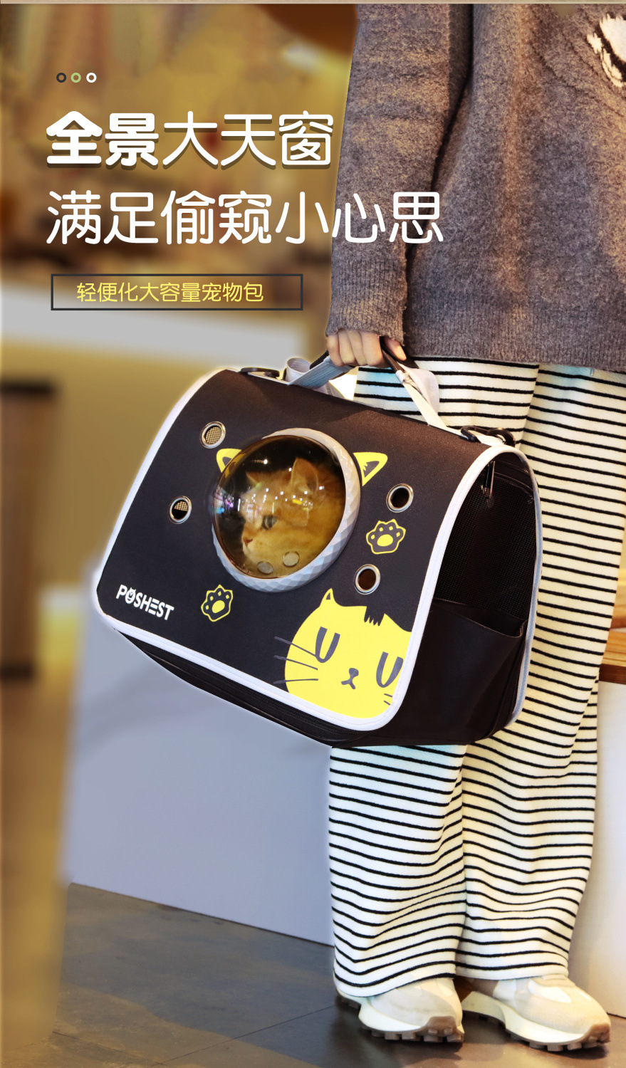 고양이 가방, 휴대용 어깨 크로스 바디 애완 동물 배낭, 개와 고양이 휴대용 학교 가방, 우주 캡슐, 통기성 및 스트레스 방지스토어 가기