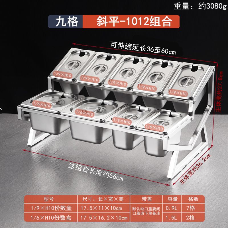 1/9 스테인레스 스틸 포션 빈 랙 잼 상자 밀크 티 샵 특수 포션 상자 랙 밀크 티 소스 조미료 상자