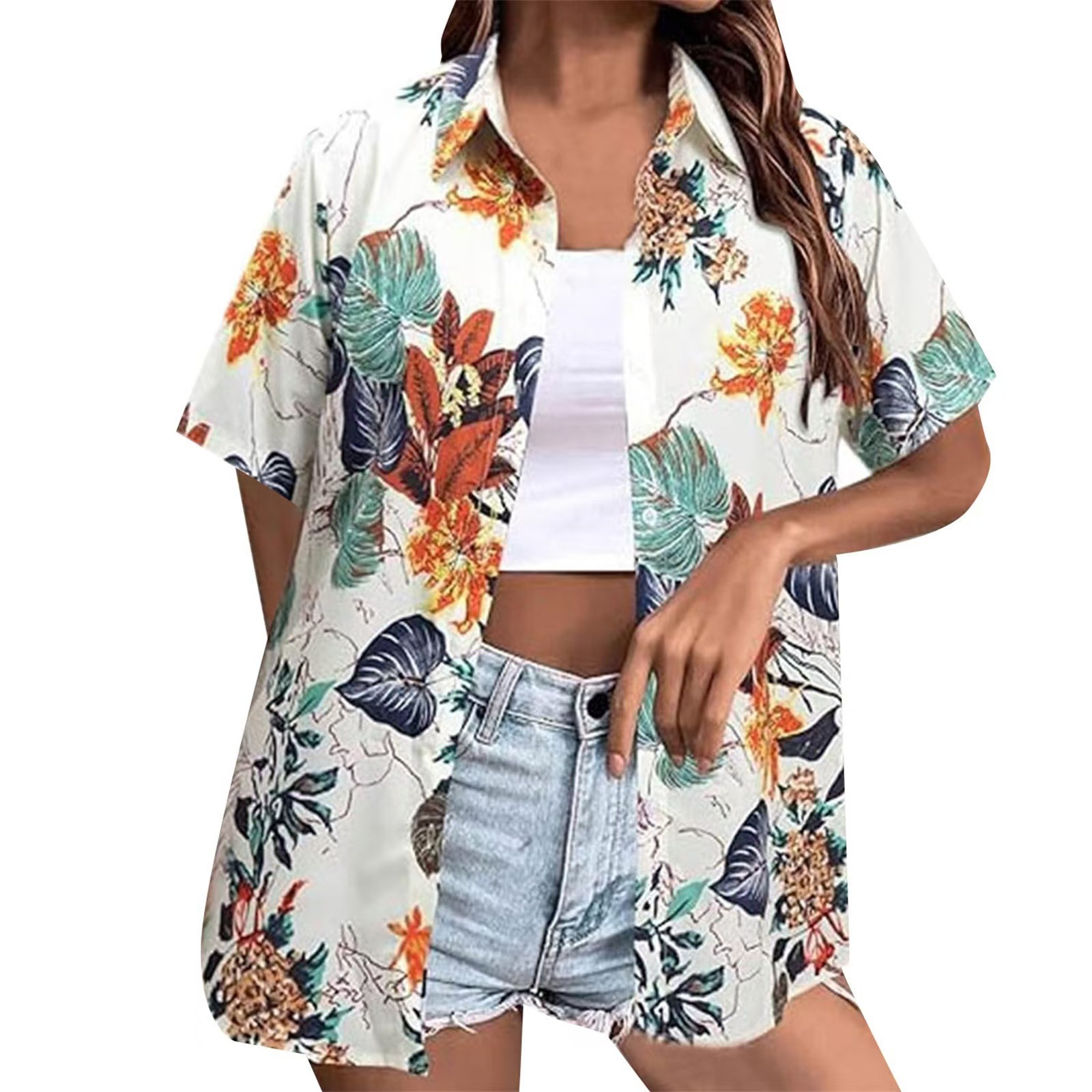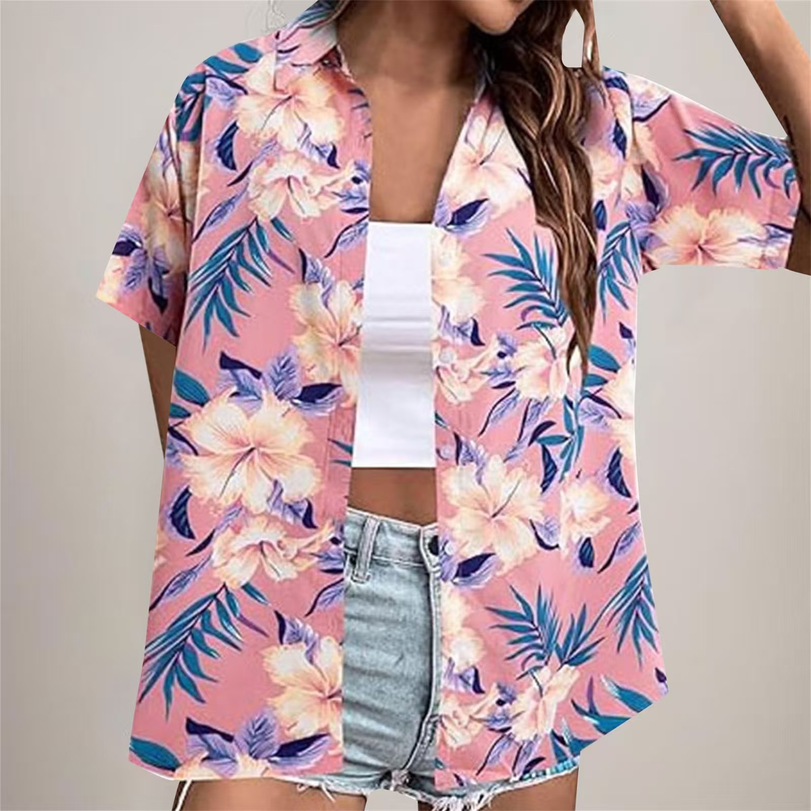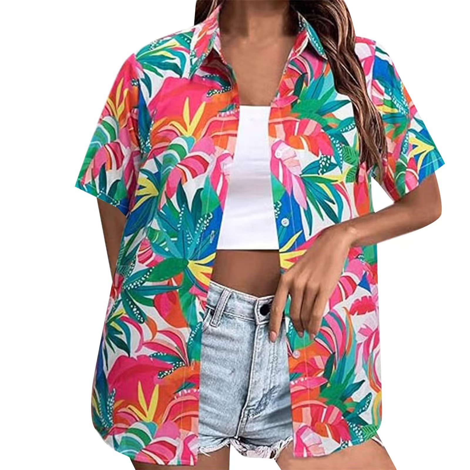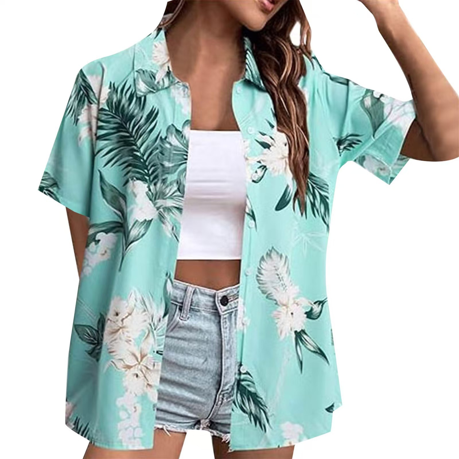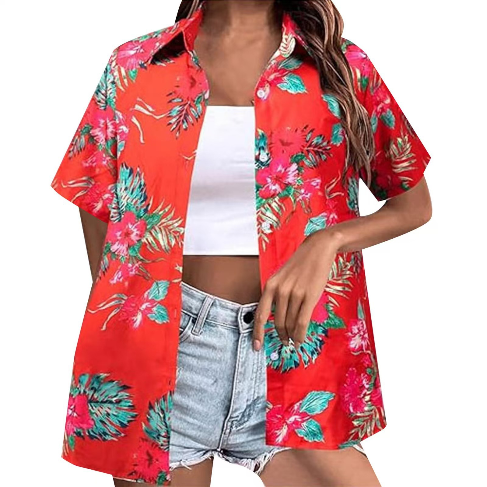 2025 유럽과 미국의 3D 디지털 인쇄 반팔 셔츠 여성 하와이 셔츠 부드럽고 멋진 꽃 열대 셔츠
