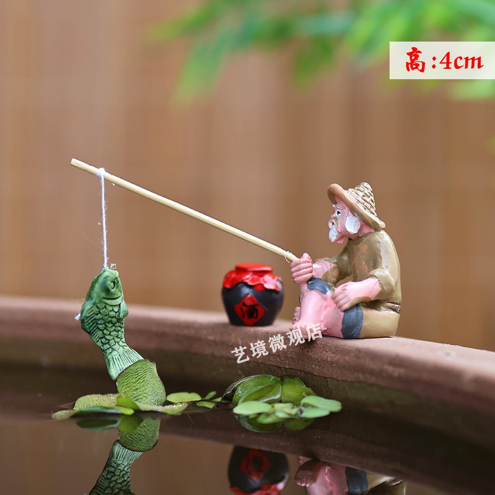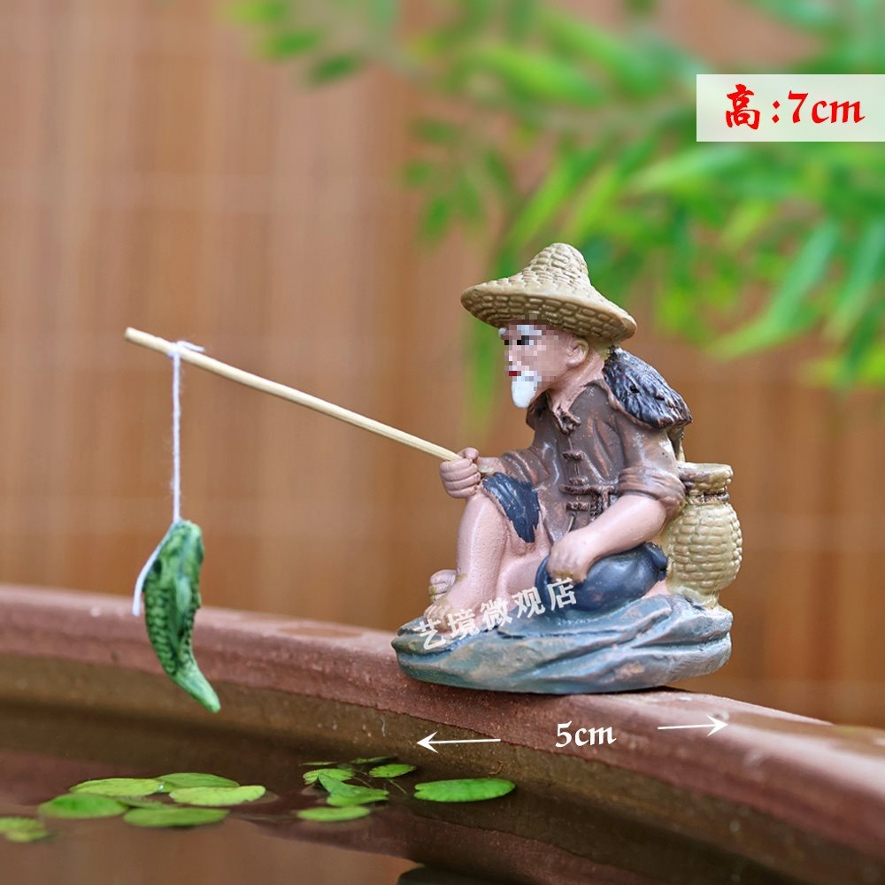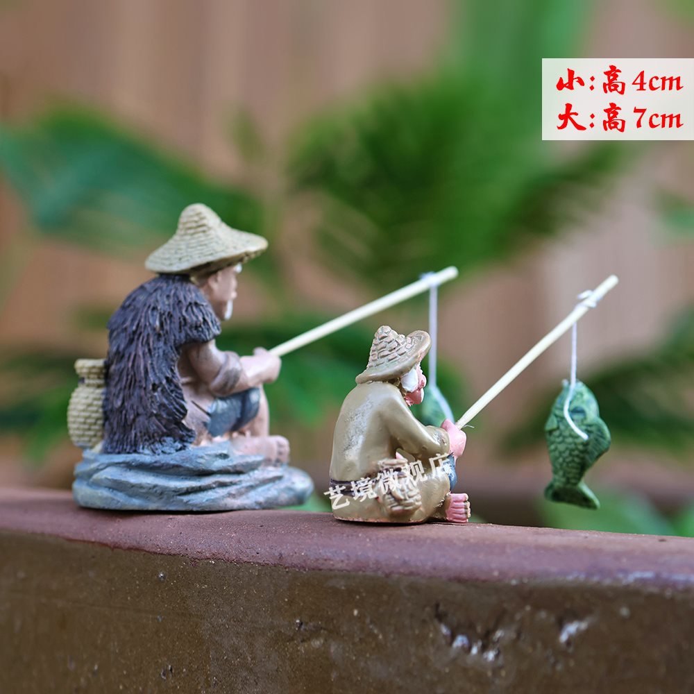 낚시꾼, 낚시꾼, 장타공 낚시, 중국식 마이크로 조경 장식품, 석가대, 수조, 분재 조경 장식품스토어 가기