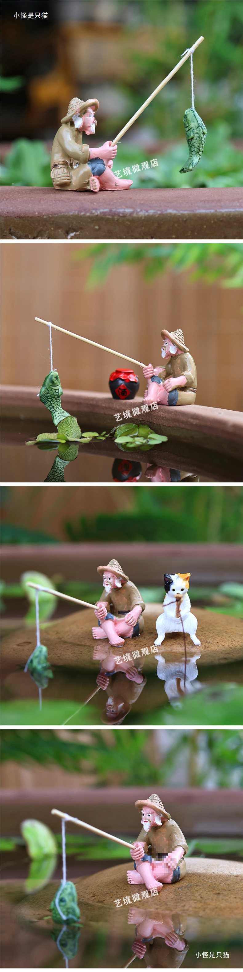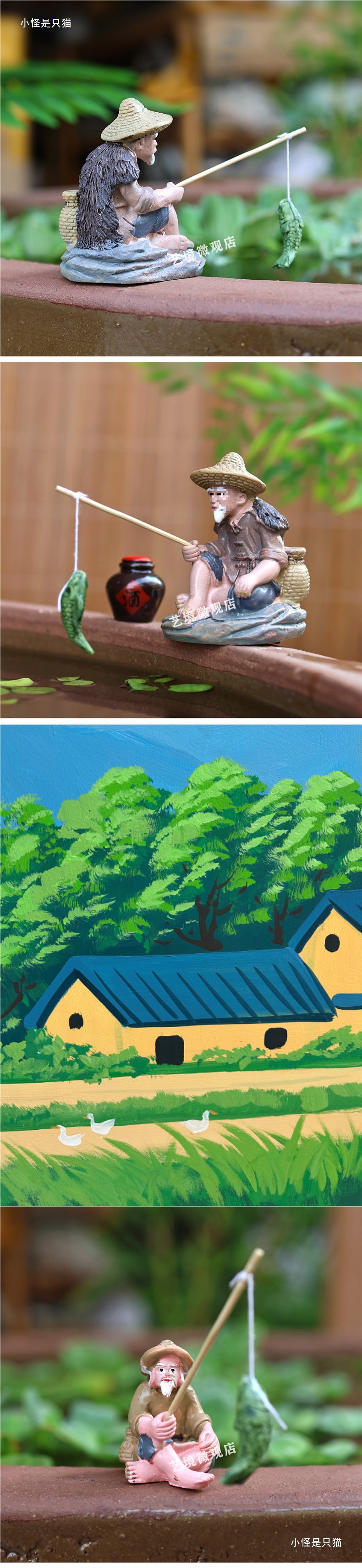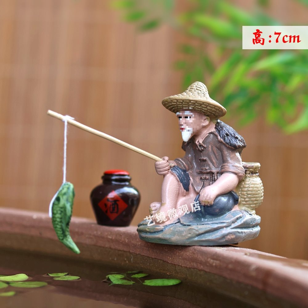 낚시꾼, 낚시꾼, 장타공 낚시, 중국식 마이크로 조경 장식품, 석가대, 수조, 분재 조경 장식품스토어 가기