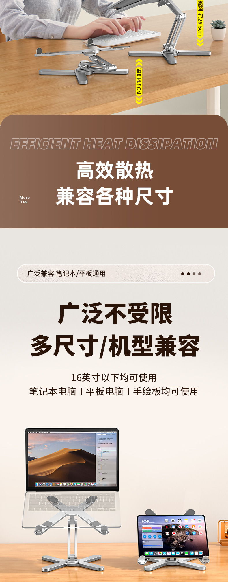 N86 노트북 스탠드 알루미늄 합금 회전 데스크탑 높이 리프팅 접이식 냉각 브래킷 도매