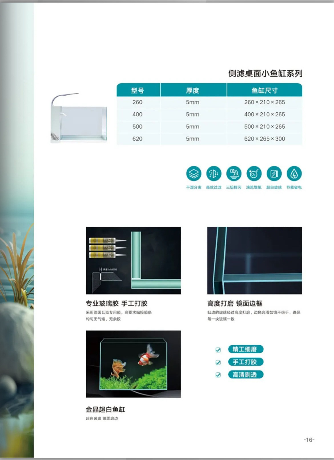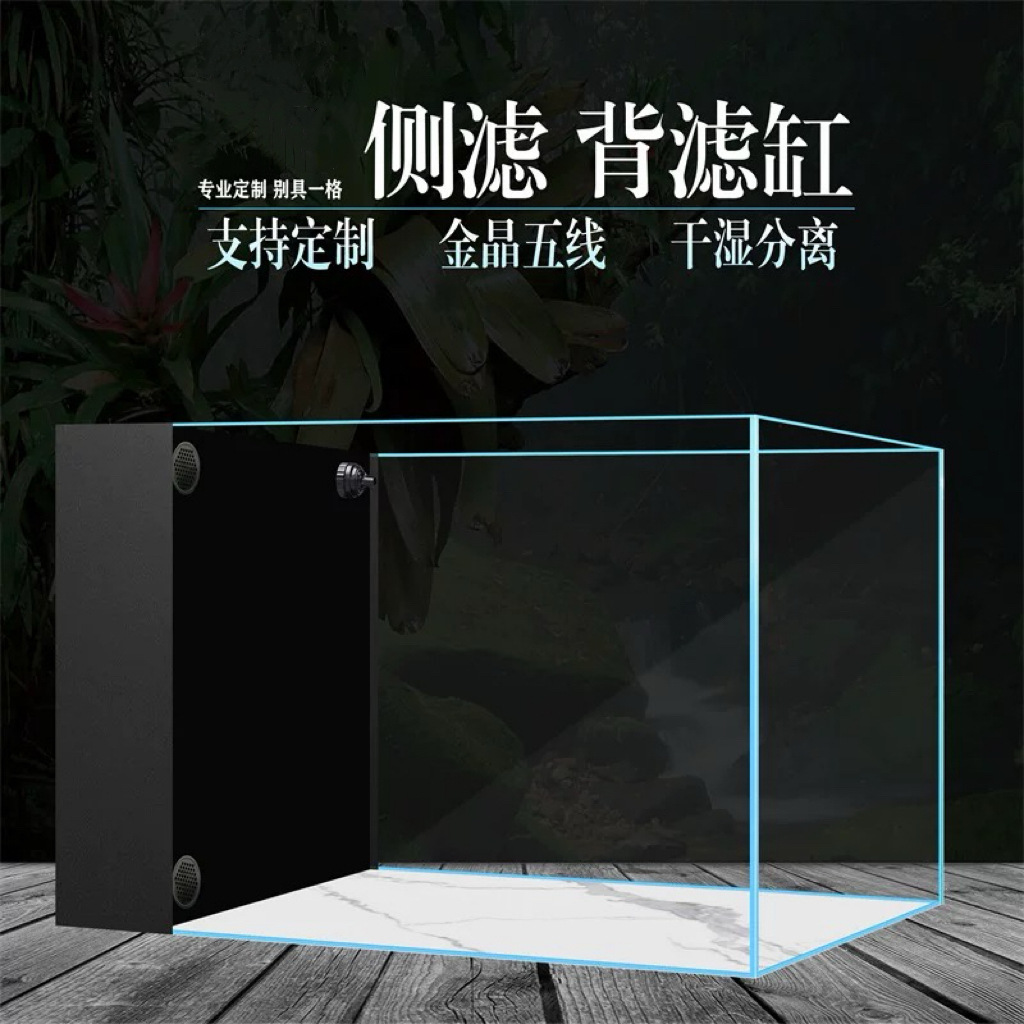 맞춤형 새로운 데스크탑 초백색 유리 측면 필터 탱크 자체 순환 필터링 조경 소형 수조 측면 필터 수족관