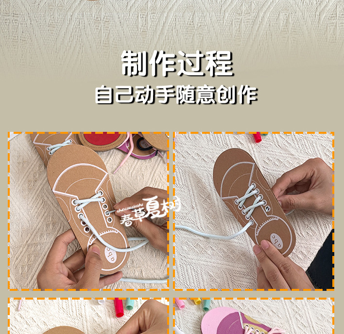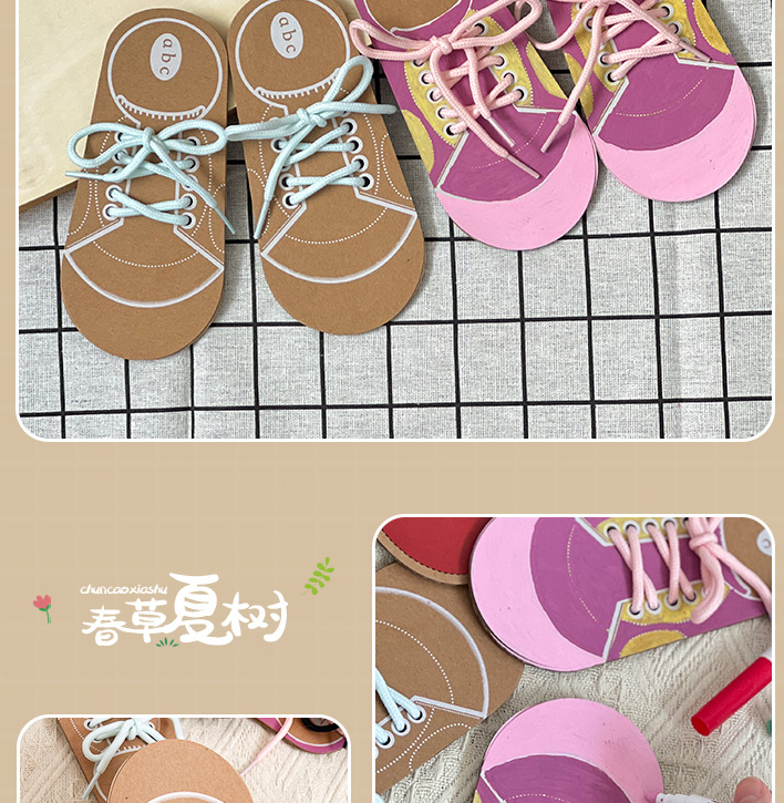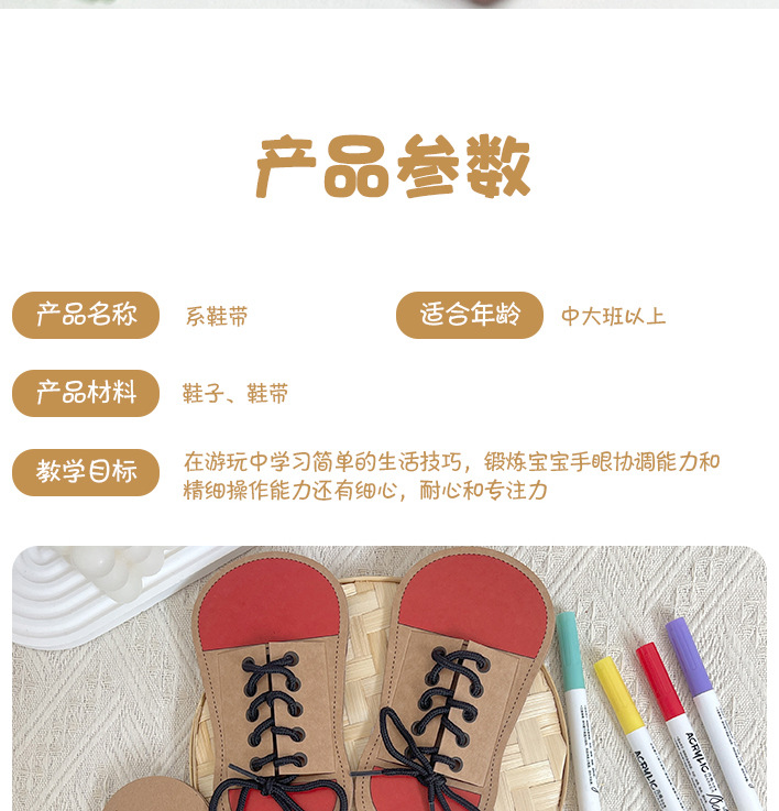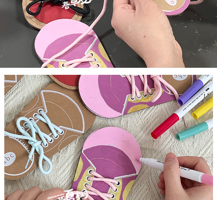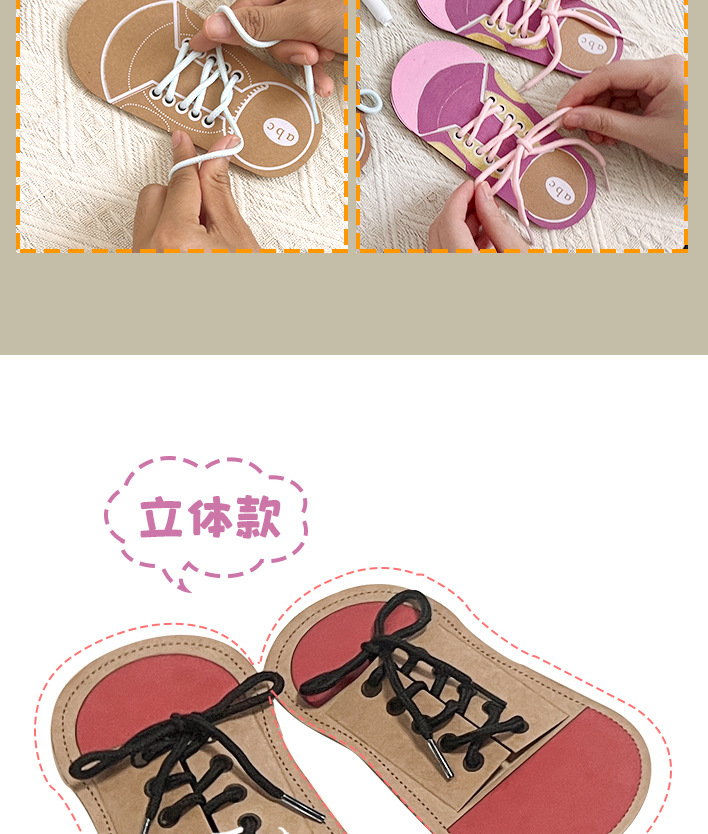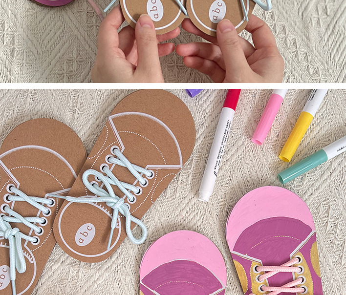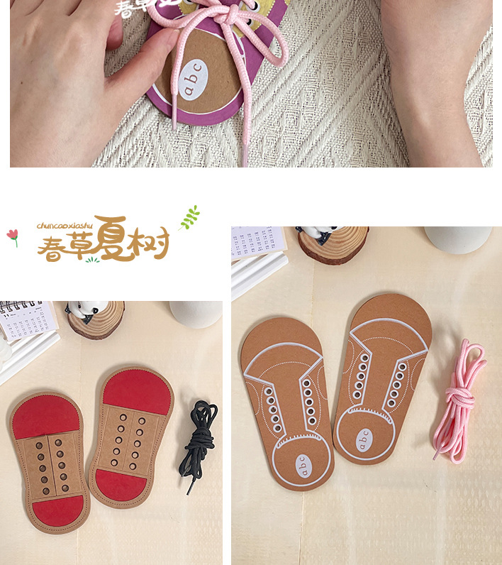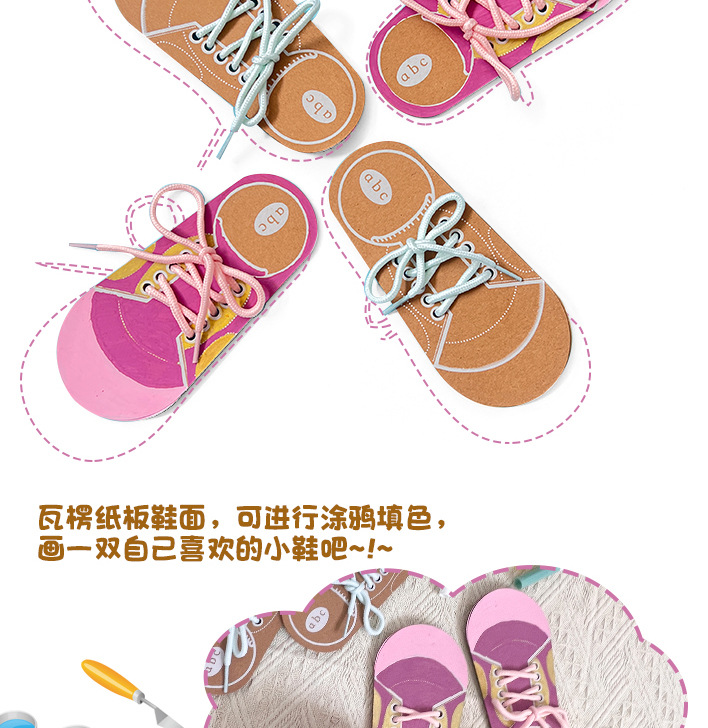 어린이 신발끈 장난감 교구 신발끈 묶는 법을 배우고 신발끈을 신는 연습을 하는 아기 몬테소리 유치원 교육 영역 조기 교육