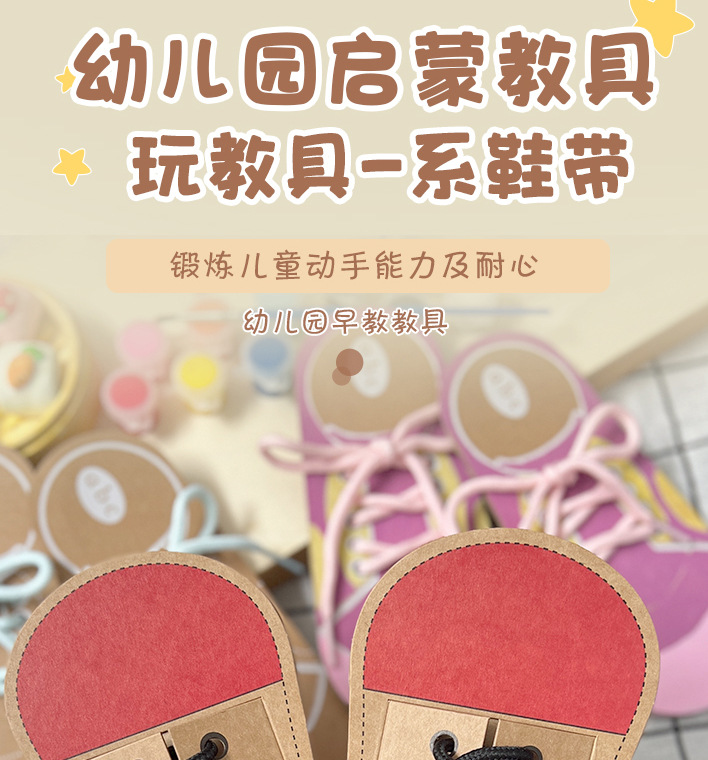 어린이 신발끈 장난감 교구 신발끈 묶는 법을 배우고 신발끈을 신는 연습을 하는 아기 몬테소리 유치원 교육 영역 조기 교육스토어 가기