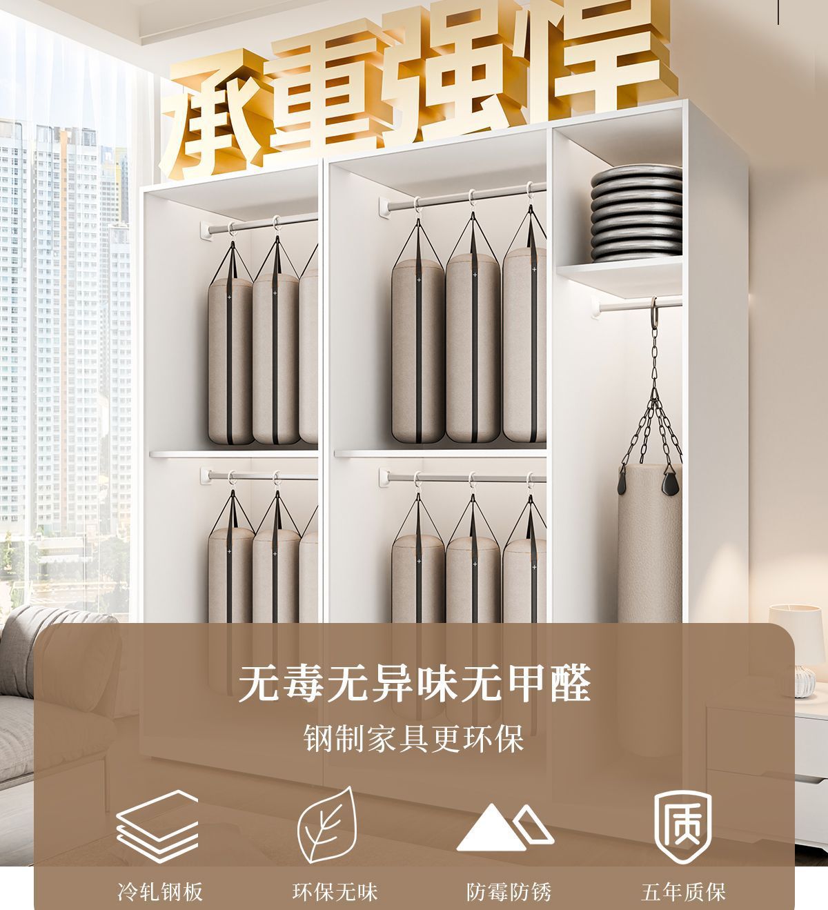 옷장 침실 가정용 소형 수납 캐비닛 포름알데히드 프리 조합 대형 옷장 강철 철판 캐비닛 수납 신제품