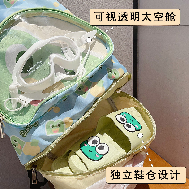 어린이 수영 가방 귀여운 만화 건식 및 습식 분리 방수 보관 가방 소년과 소녀 휴대용 배낭 해변 어깨