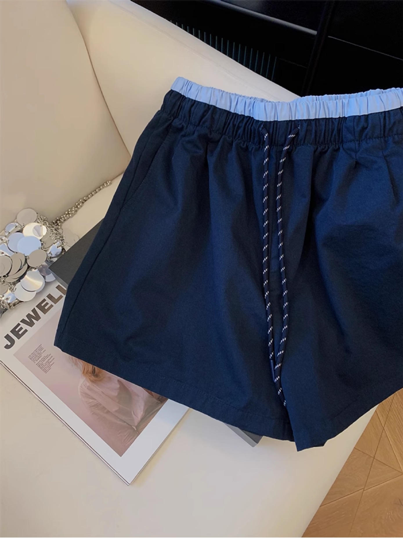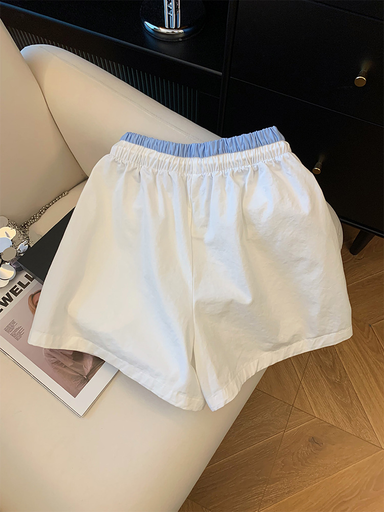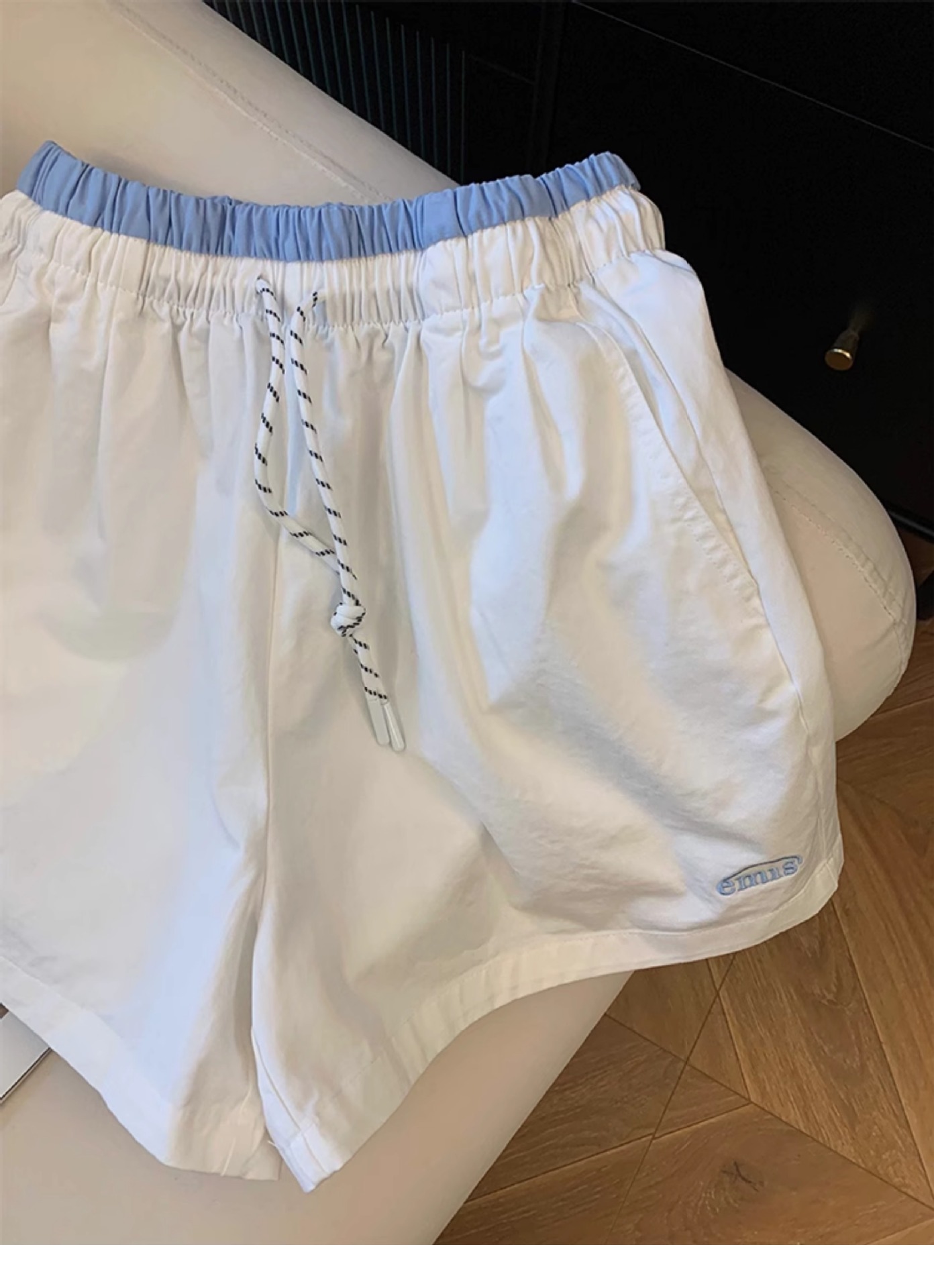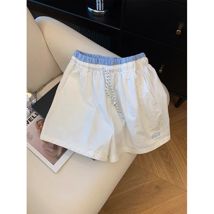 2025년 여름 새로운 스타일의 편안한 흰색 바지 작은 사람들을 위한 끈이 느슨한 게으른 스타일 캐주얼 스포츠 반바지 여성용