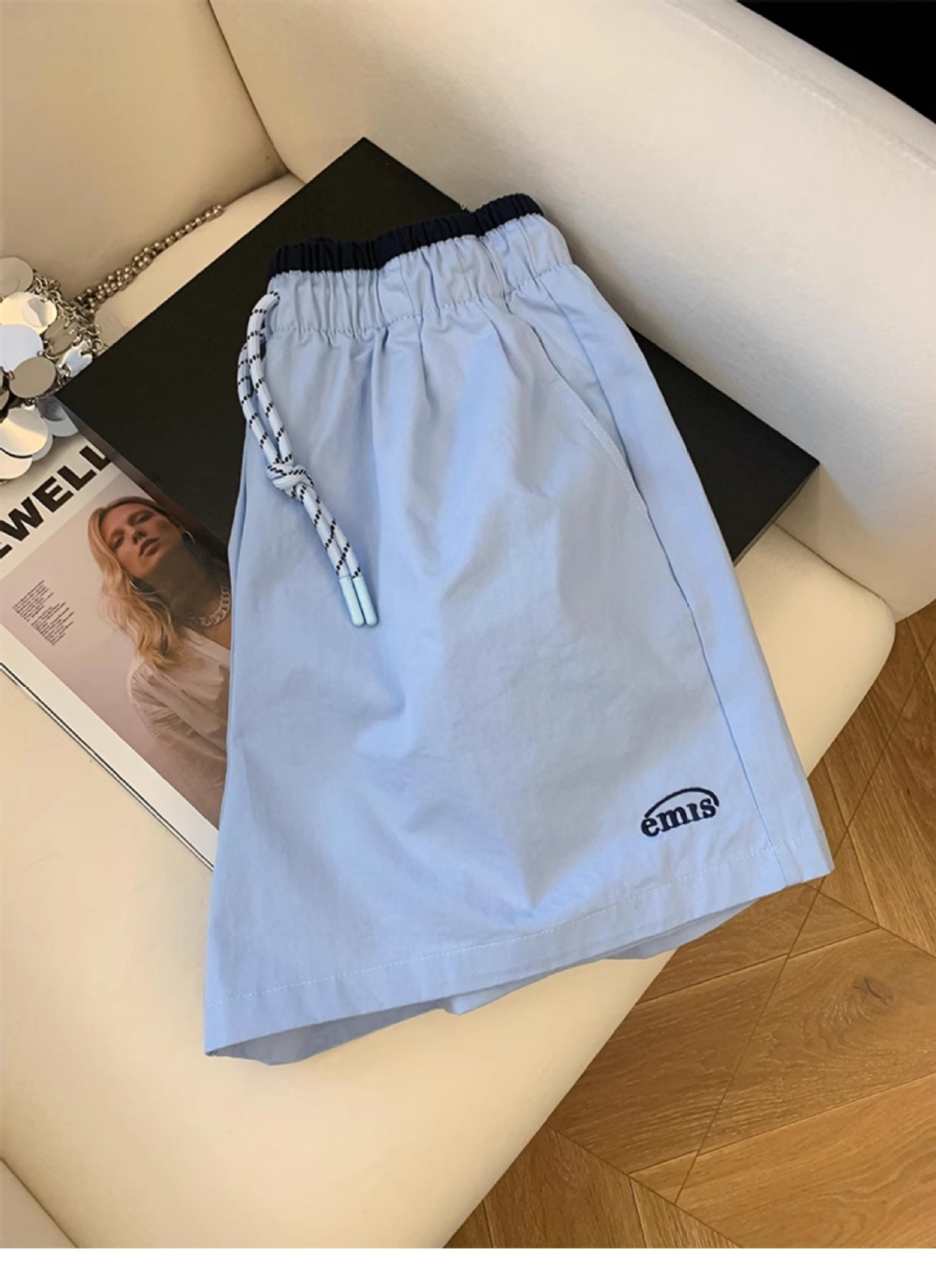 2025년 여름 새로운 스타일의 편안한 흰색 바지 작은 사람들을 위한 끈이 느슨한 게으른 스타일 캐주얼 스포츠 반바지 여성용스토어 가기