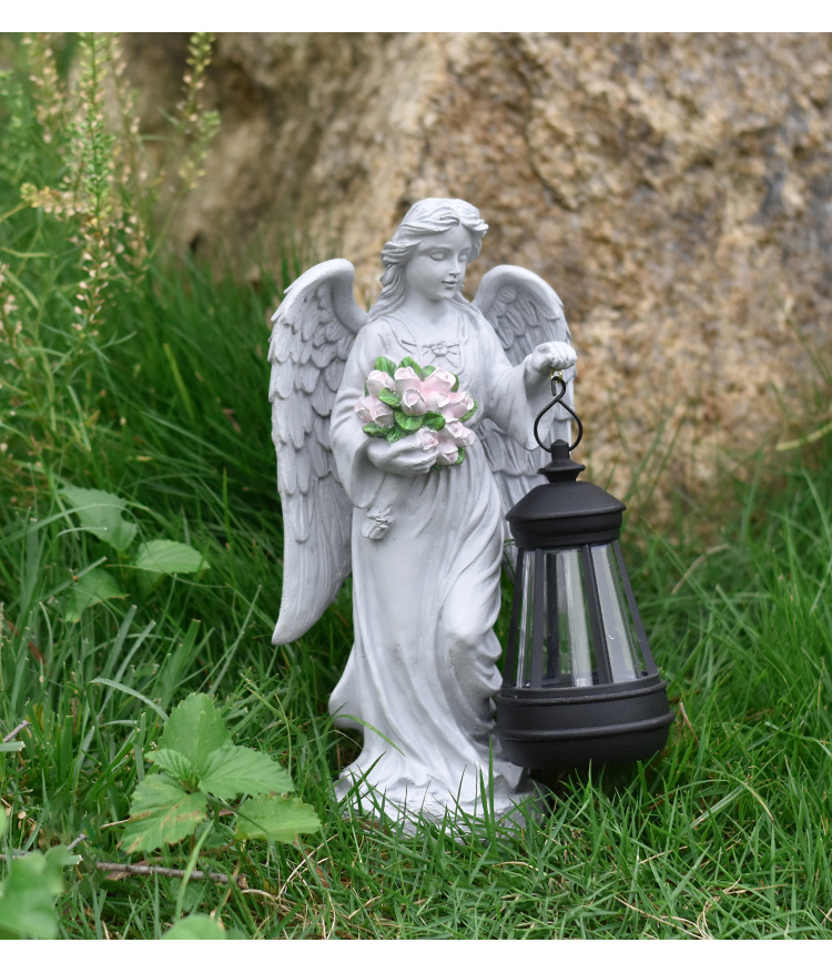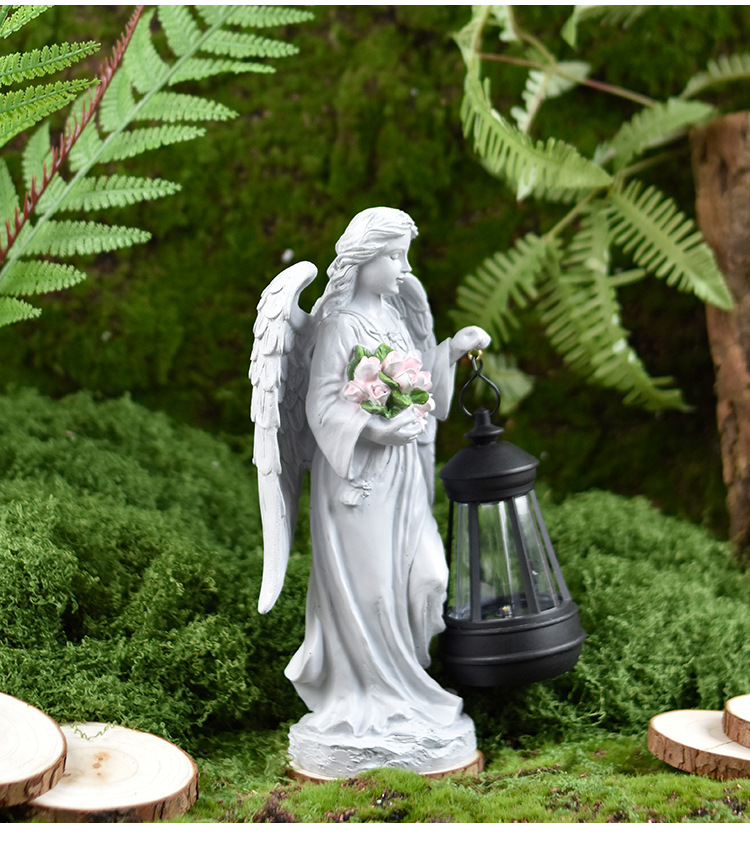 국경을 넘는 인기상품 천사 랜턴 정원 조각상 천사 소녀 야외 태양광 정원 장식품 야간 조명 장식
