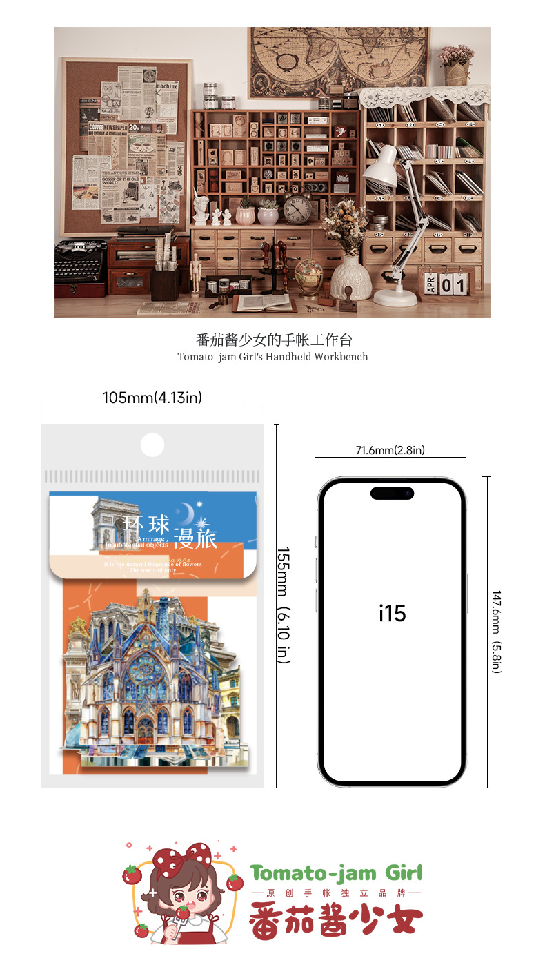 토마토 소스 소녀 글로벌 여행 시리즈 여행 테마 하드 카드 스티커 유럽 스타일 핸드북 복고풍 베이스 DIY 6 스타일