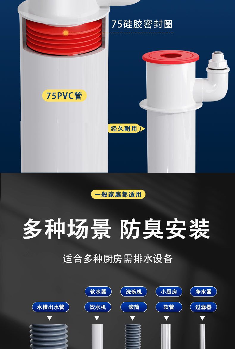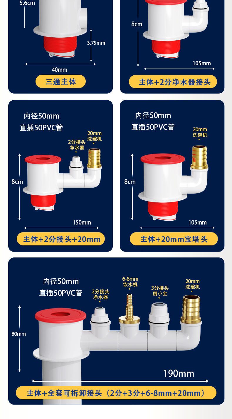 국경 간 싱크대 하수구 3방향 커넥터 분배기 배수관 식기 세척기 정수기 탈취제 다기능 커넥터