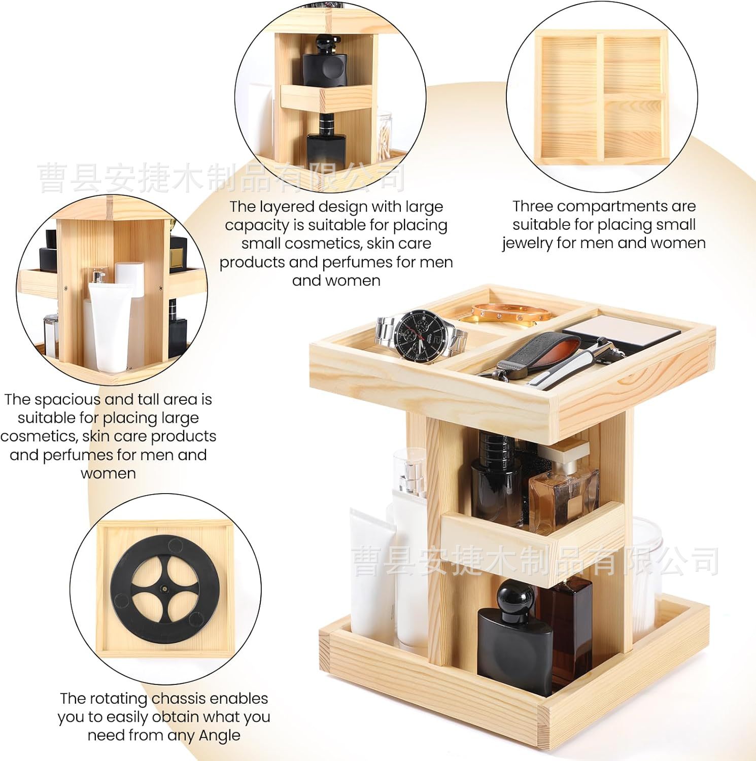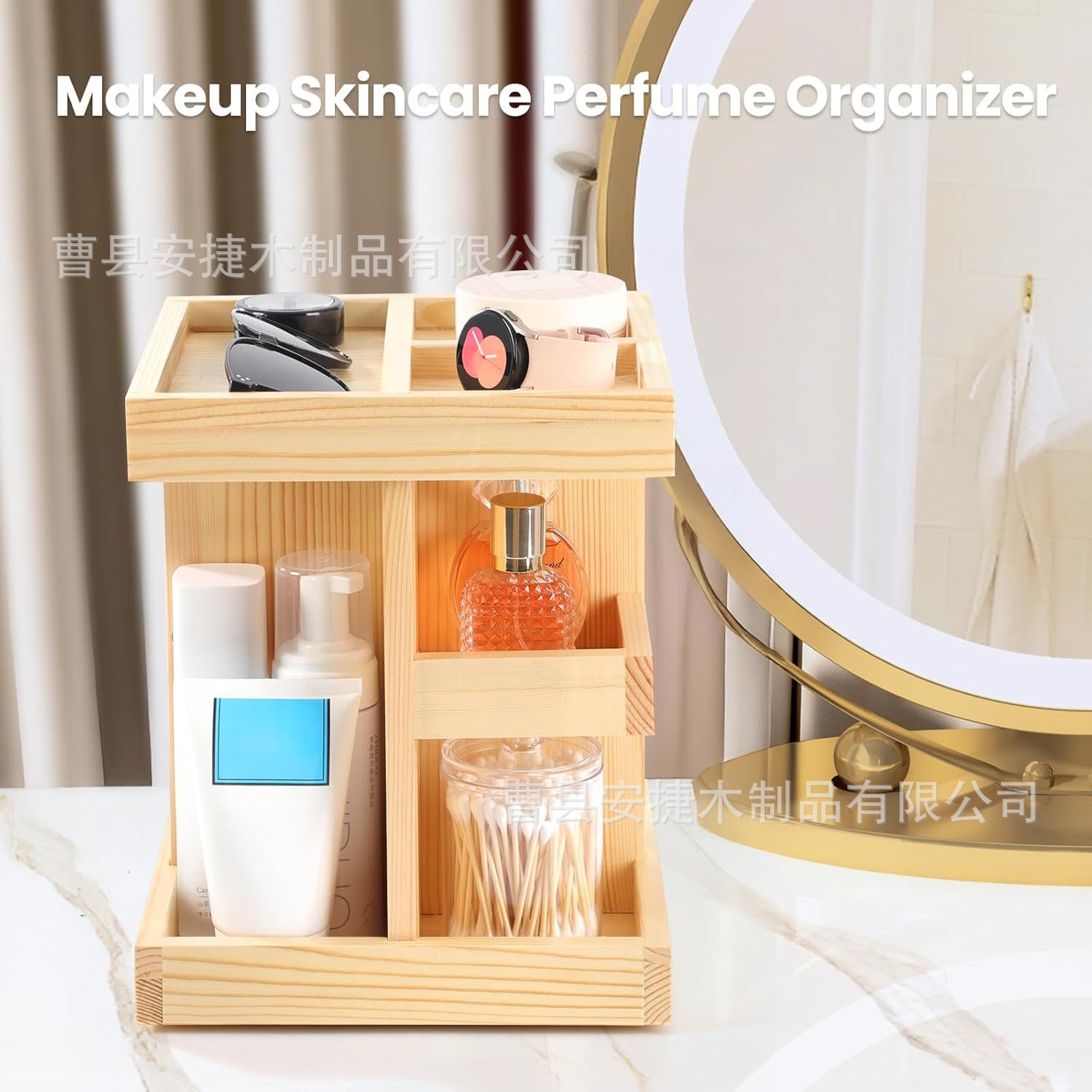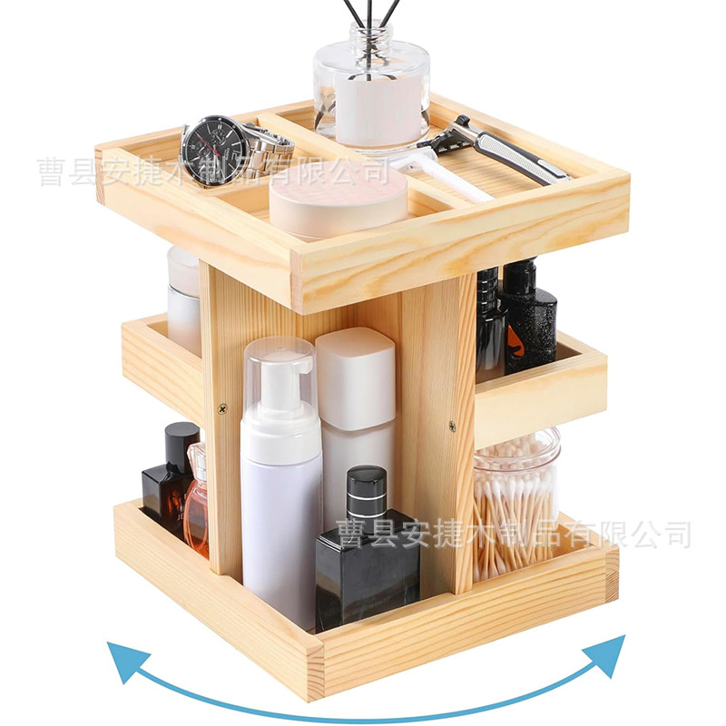 360도 회전 목재 화장품 보관함 데스크탑 화장대 스킨 케어 제품 립스틱 정리 보관함 계층화