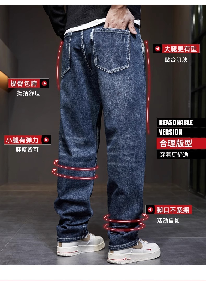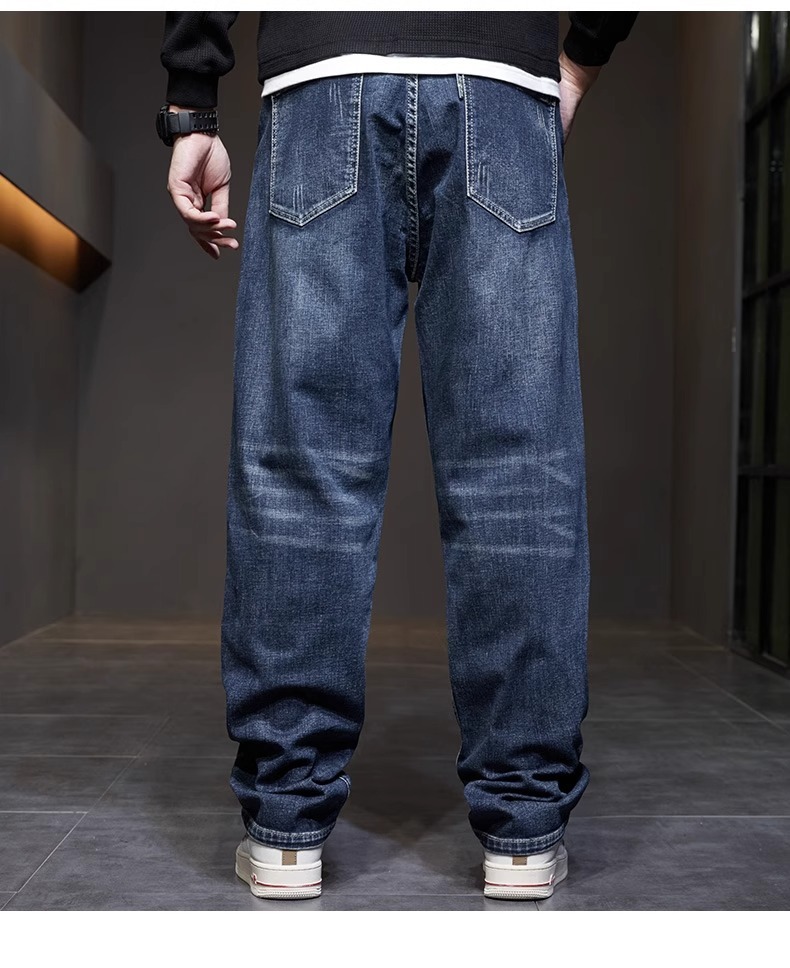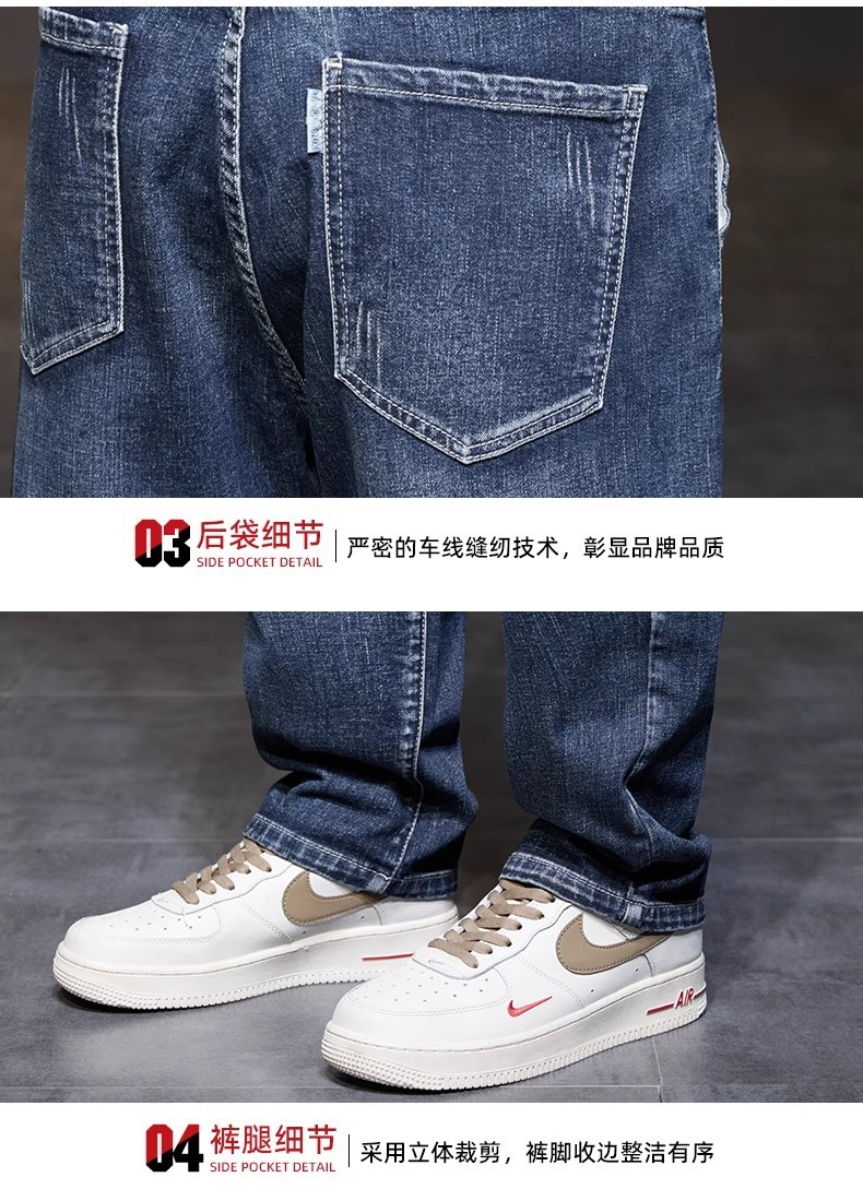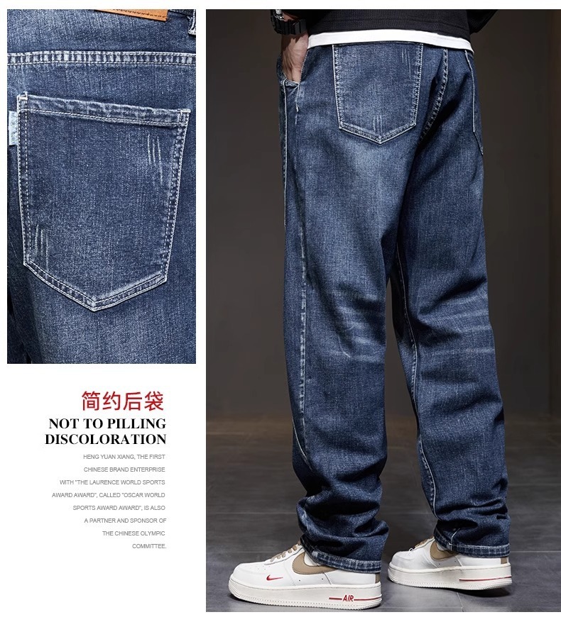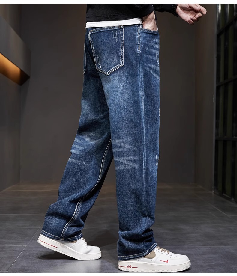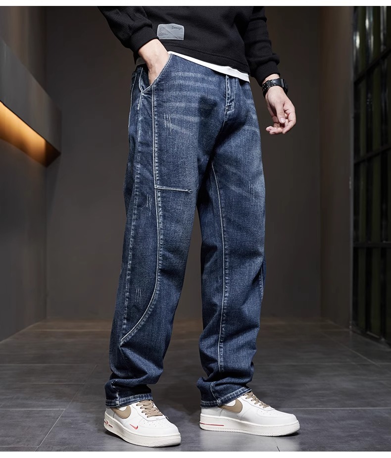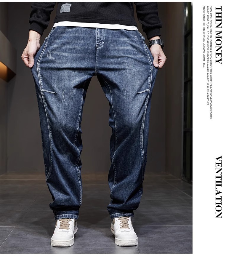 남성 청바지 여름 얇은 2025 새로운 패션 트렌드 스플 라이스 느슨한 대형 통기성 얼음 실크 바지스토어 가기