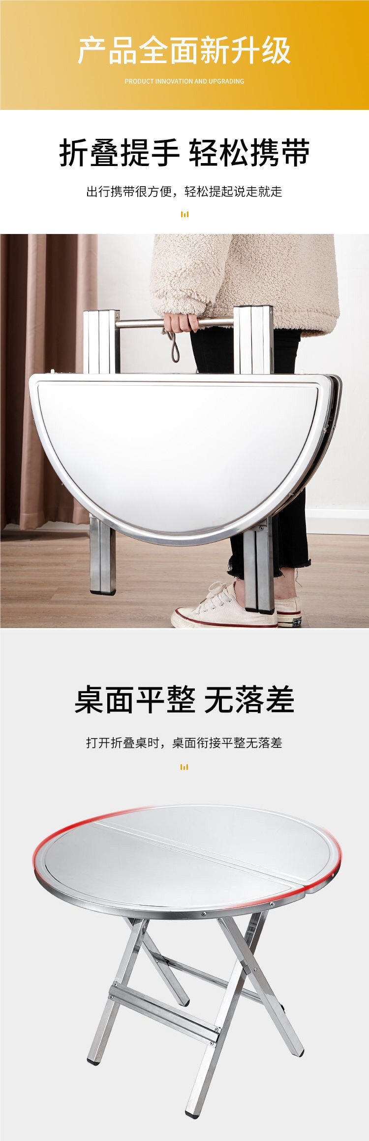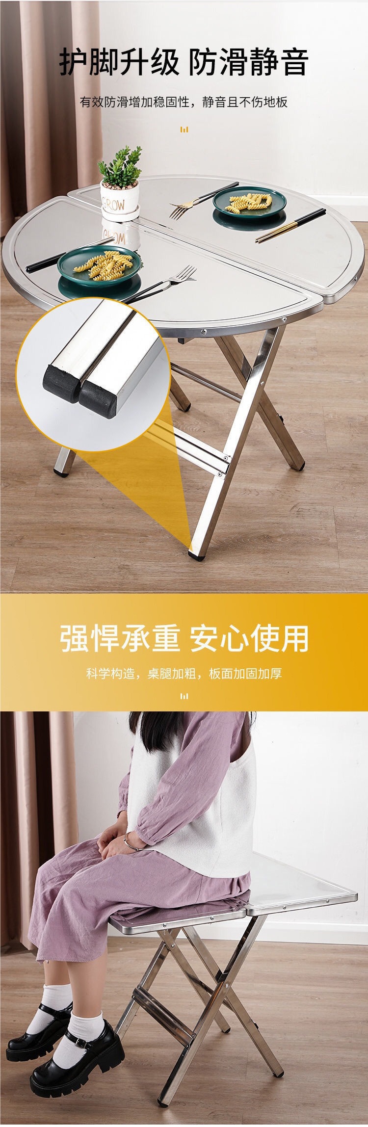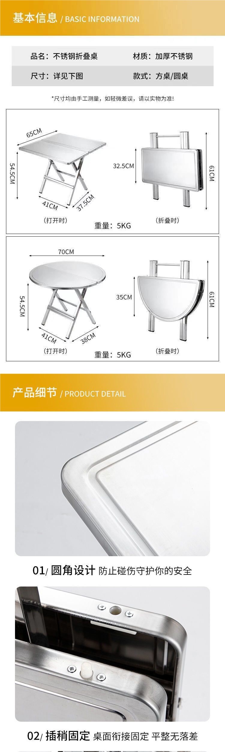 스테인레스 스틸 휴대용 접이식 원형 테이블 작은 사각형 테이블 식탁 가정용 사각형 야외 원형 테이블스토어 가기