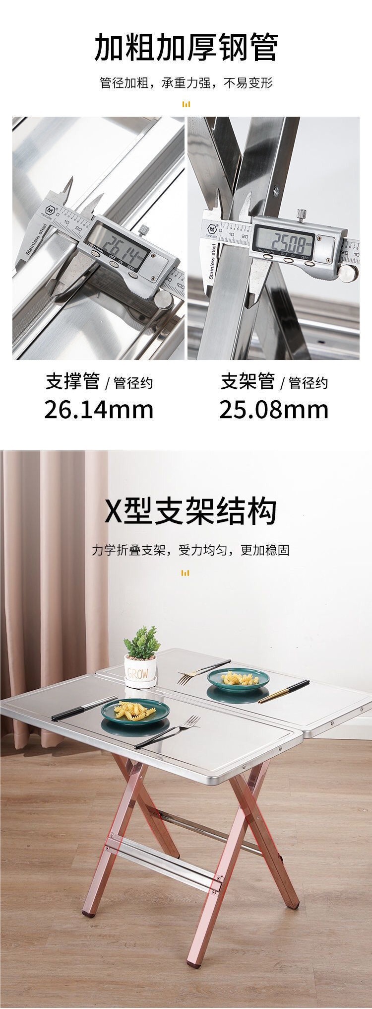 스테인레스 스틸 휴대용 접이식 원형 테이블 작은 사각형 테이블 식탁 가정용 사각형 야외 원형 테이블